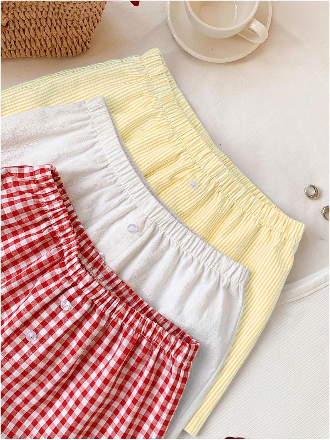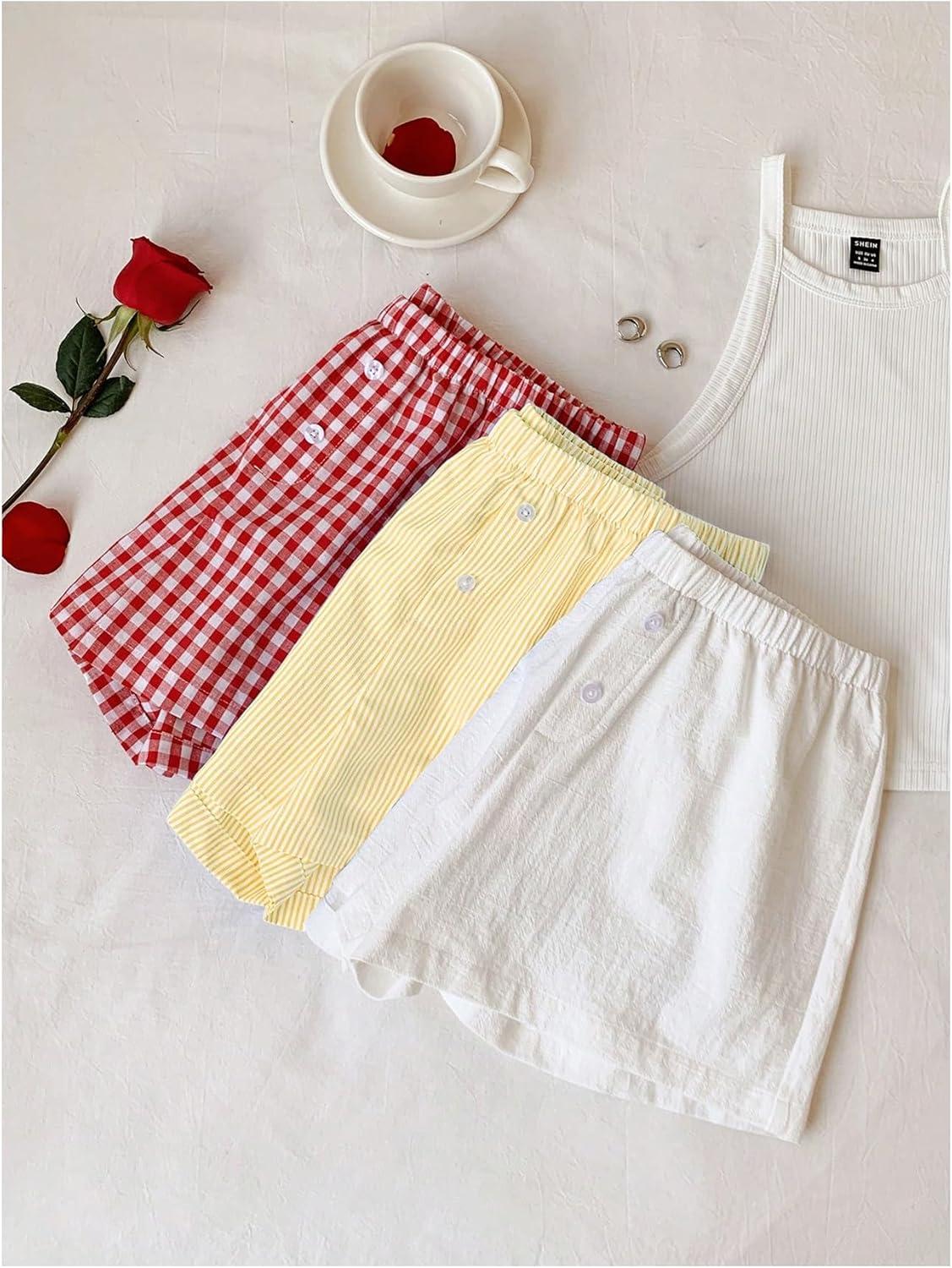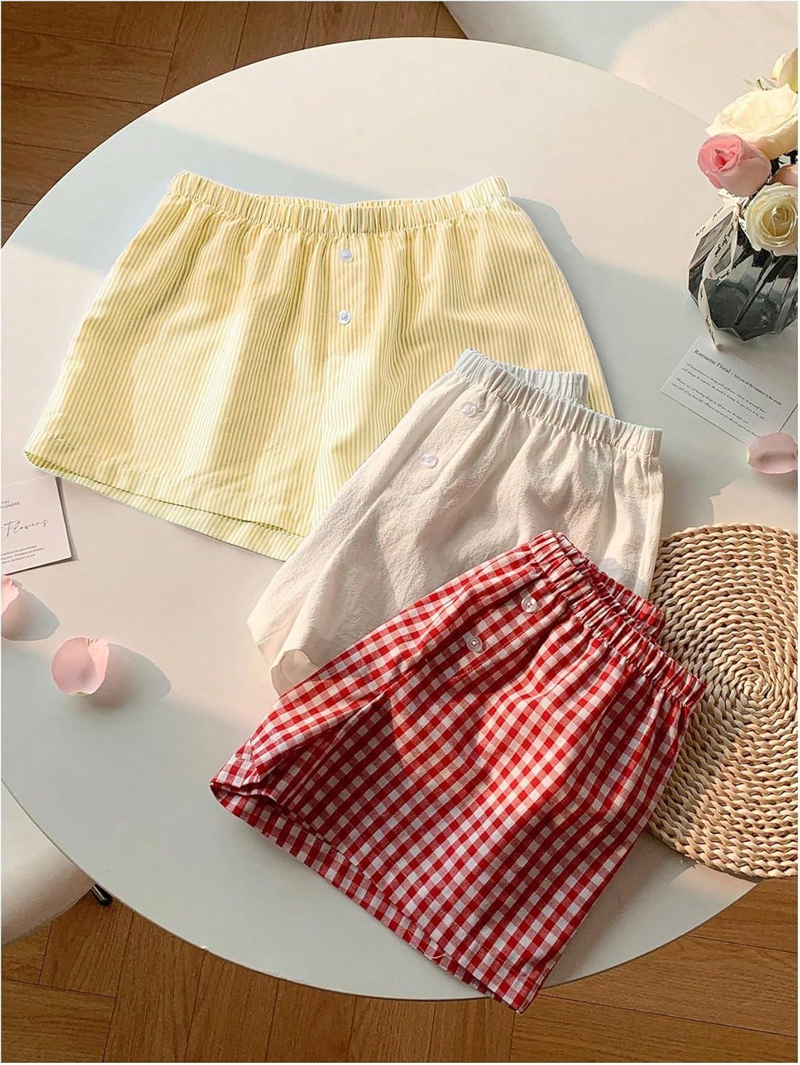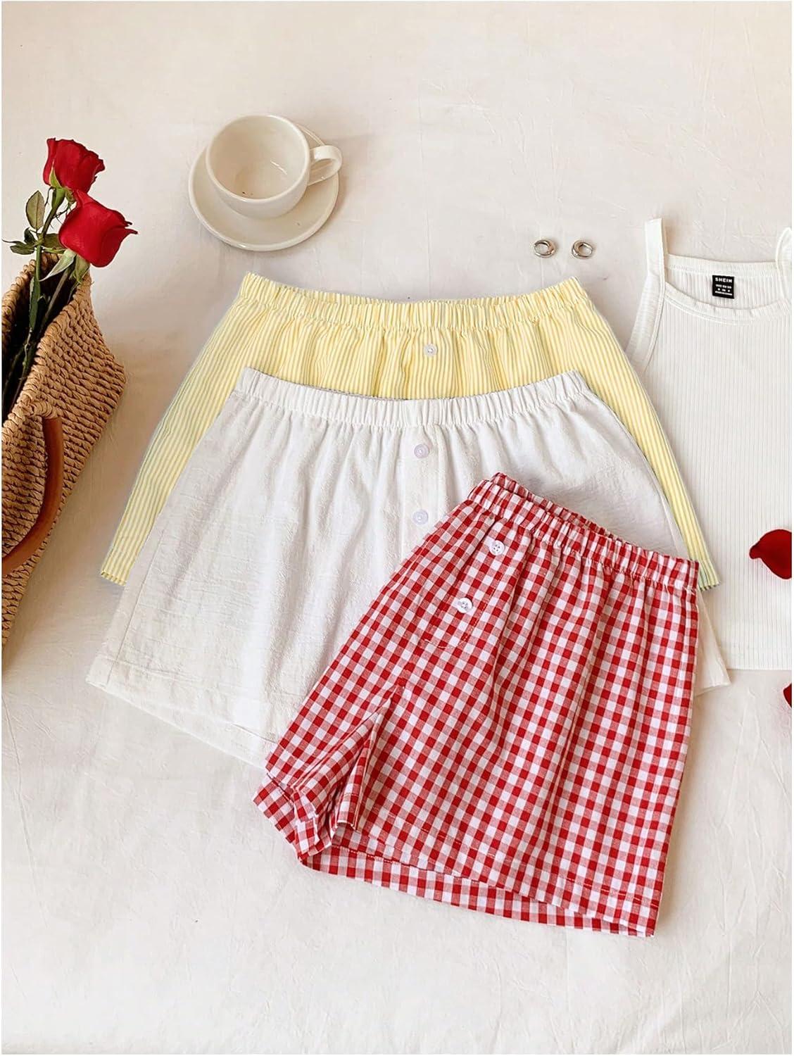 MakeMeChic Women's 3 Pack Linen Shorts Summer Lounge Sleep Pajama Boxer Shorts(Yellow White Red)