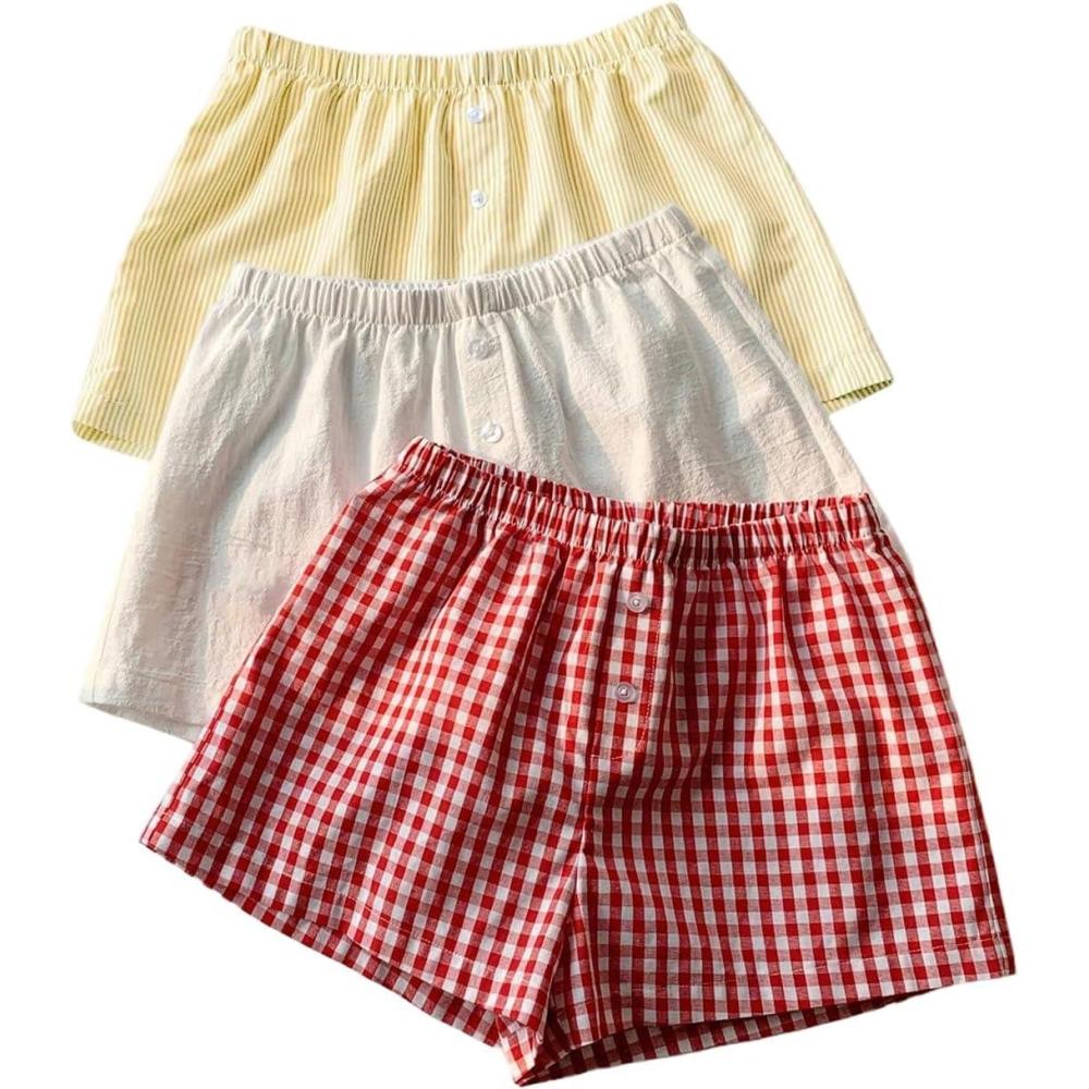 MakeMeChic Women’s 3 Pack Linen Shorts Summer Lounge Sleep Pajama Boxer Shorts(Yellow White Red)