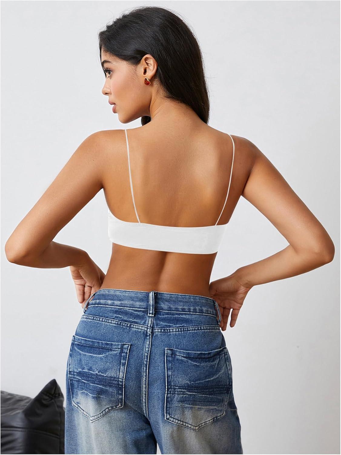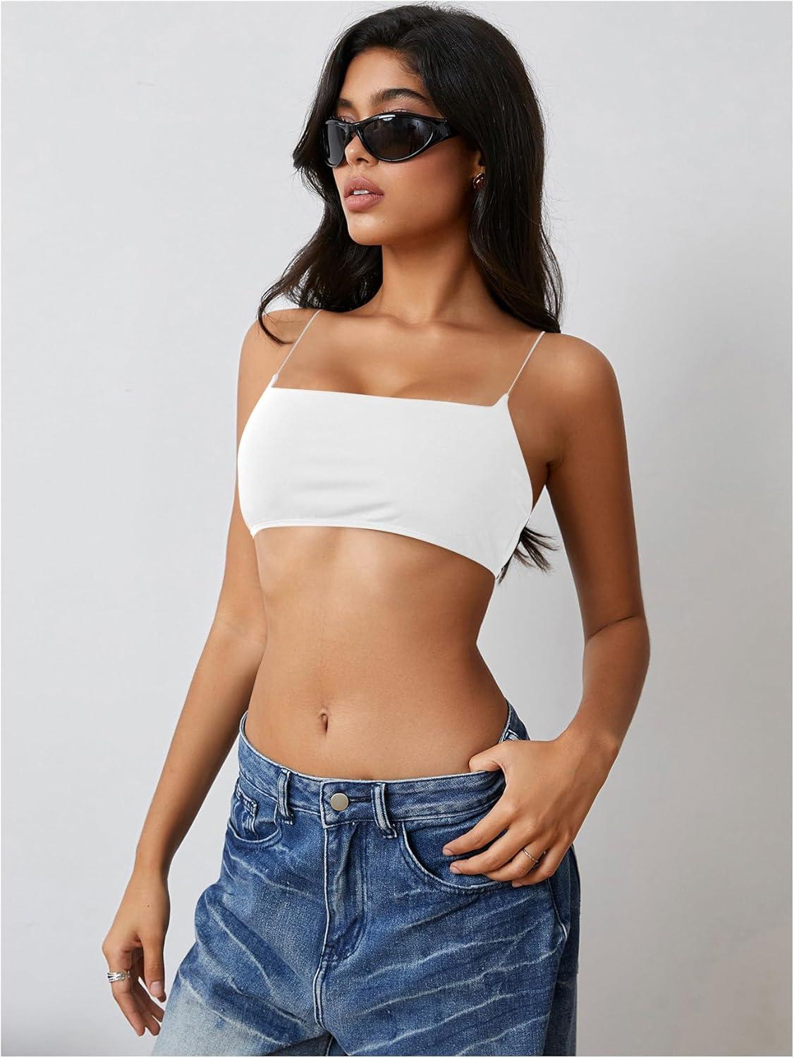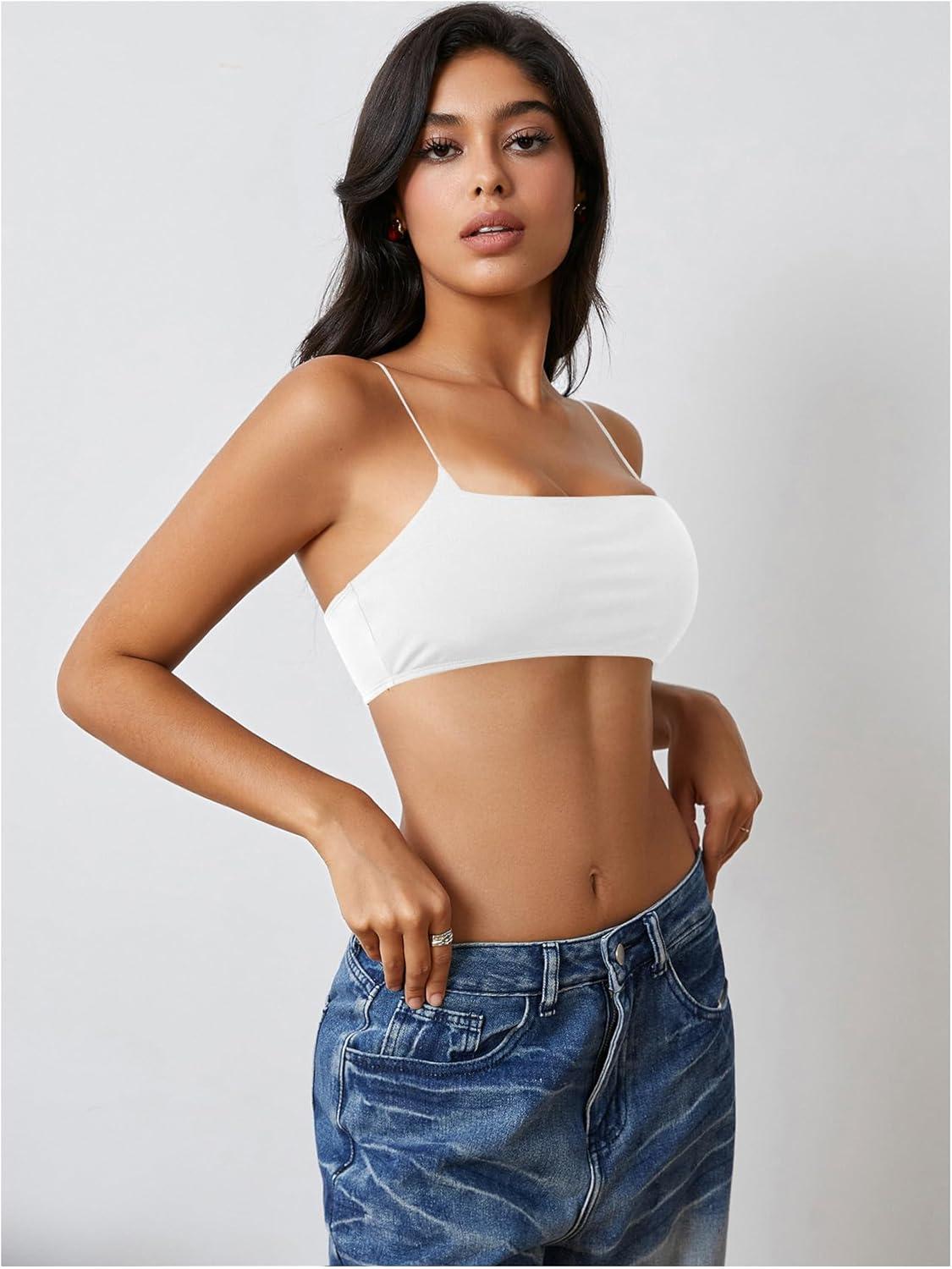 MakeMeChic Women's Basic Camisole Top Spaghetti Strap Slim Fit Bralette Summer Crop Tank Tops(White)