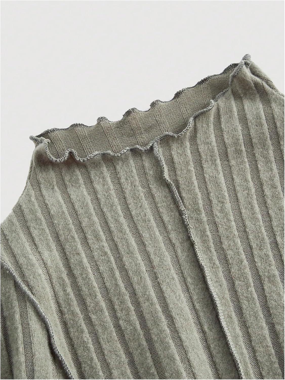Be the first to review “MakeMeChic Women’s Bell Sleeve Crop Top Mock Neck Knit Lettuce Trim Rib Tee Shirt Tops(Army Green)”
