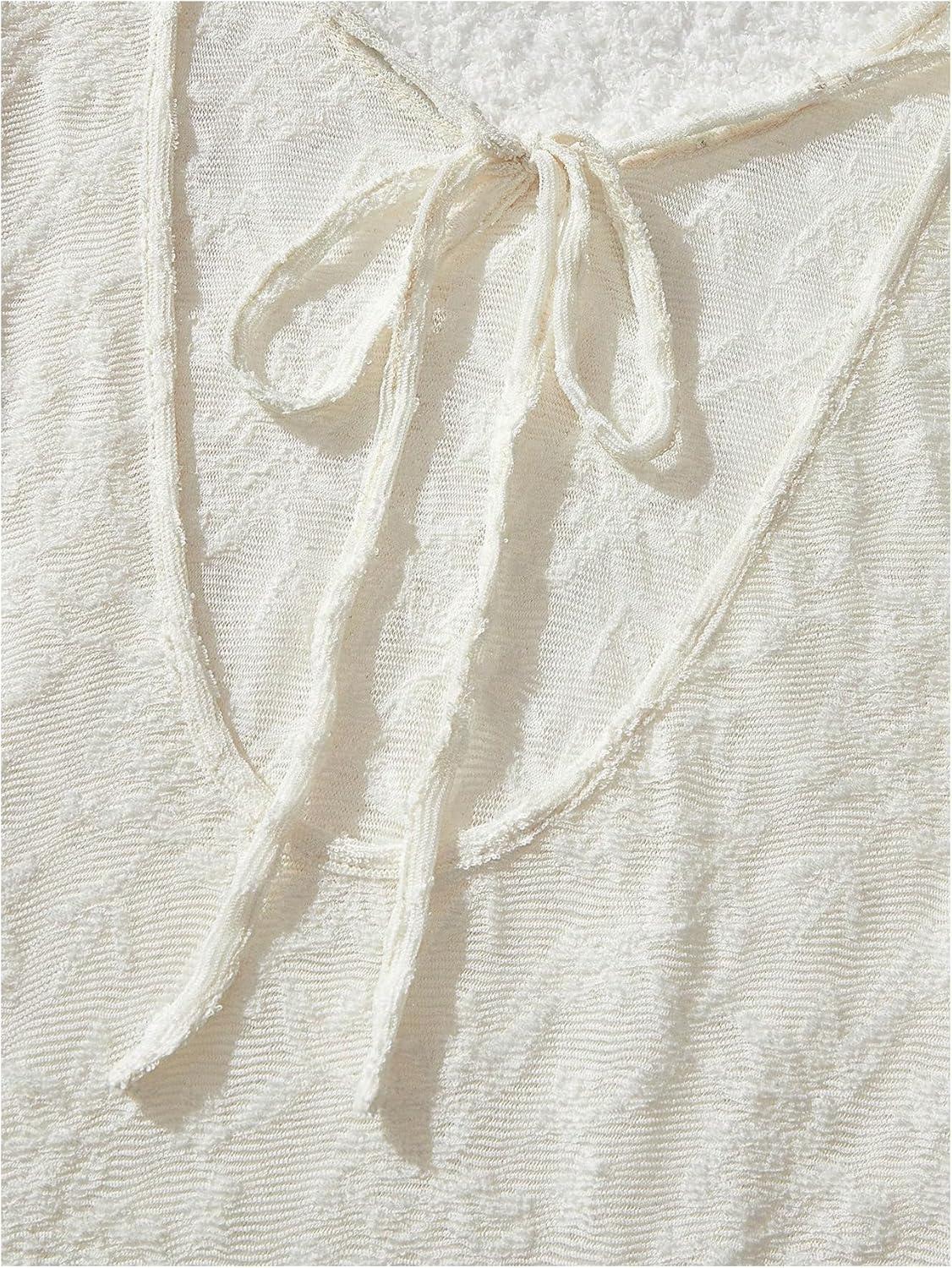 MakeMeChic Women’s Bell Sleeve Scoop Neck Tie Front Lace Beach Swim Dress Summer Cover Up