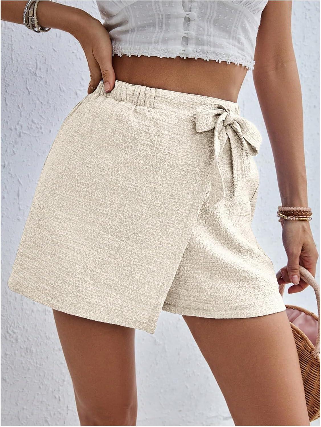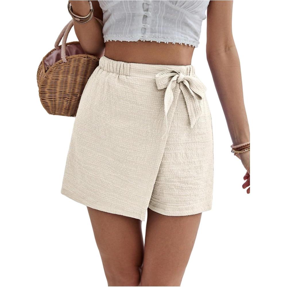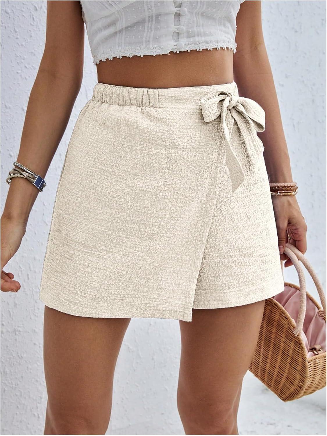 MakeMeChic Women’s Bow Knot Skorts Wrap Front Wide Leg High Waisted Summer Shorts(Apricot)
