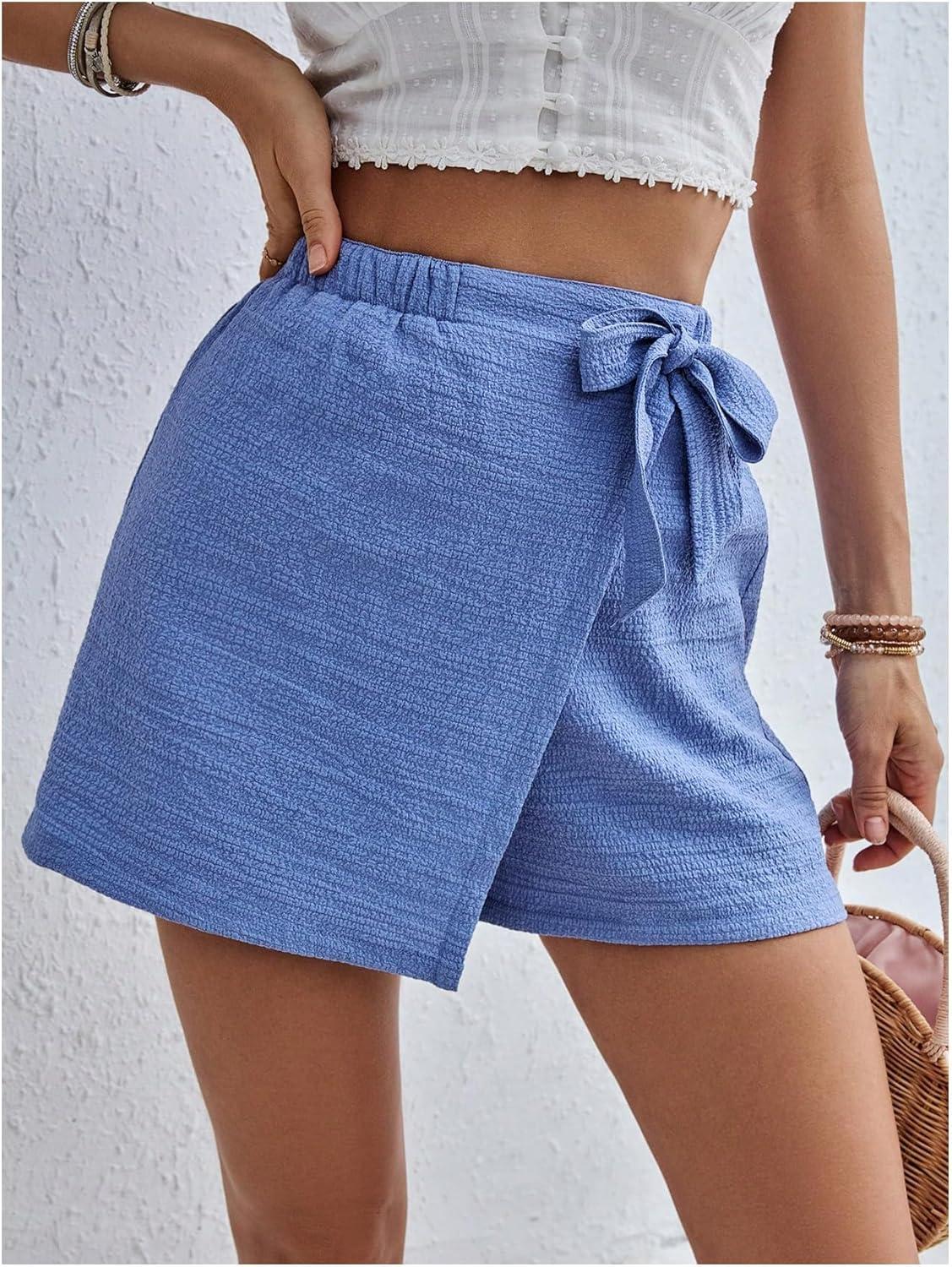 MakeMeChic Women’s Bow Knot Skorts Wrap Front Wide Leg High Waisted Summer Shorts(Blue)