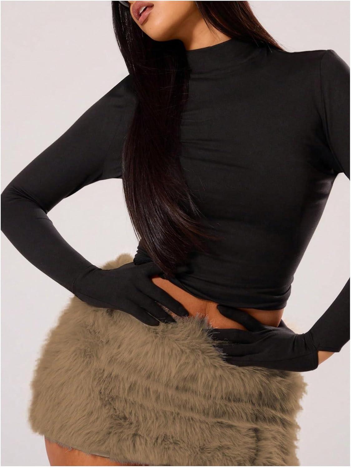 MakeMeChic Women’s Brown Mini Skirts Fall Fuzzy Fur Bodycon Skirt Y2K Concert Outfits Cowboy Chic(Coffee Brown)