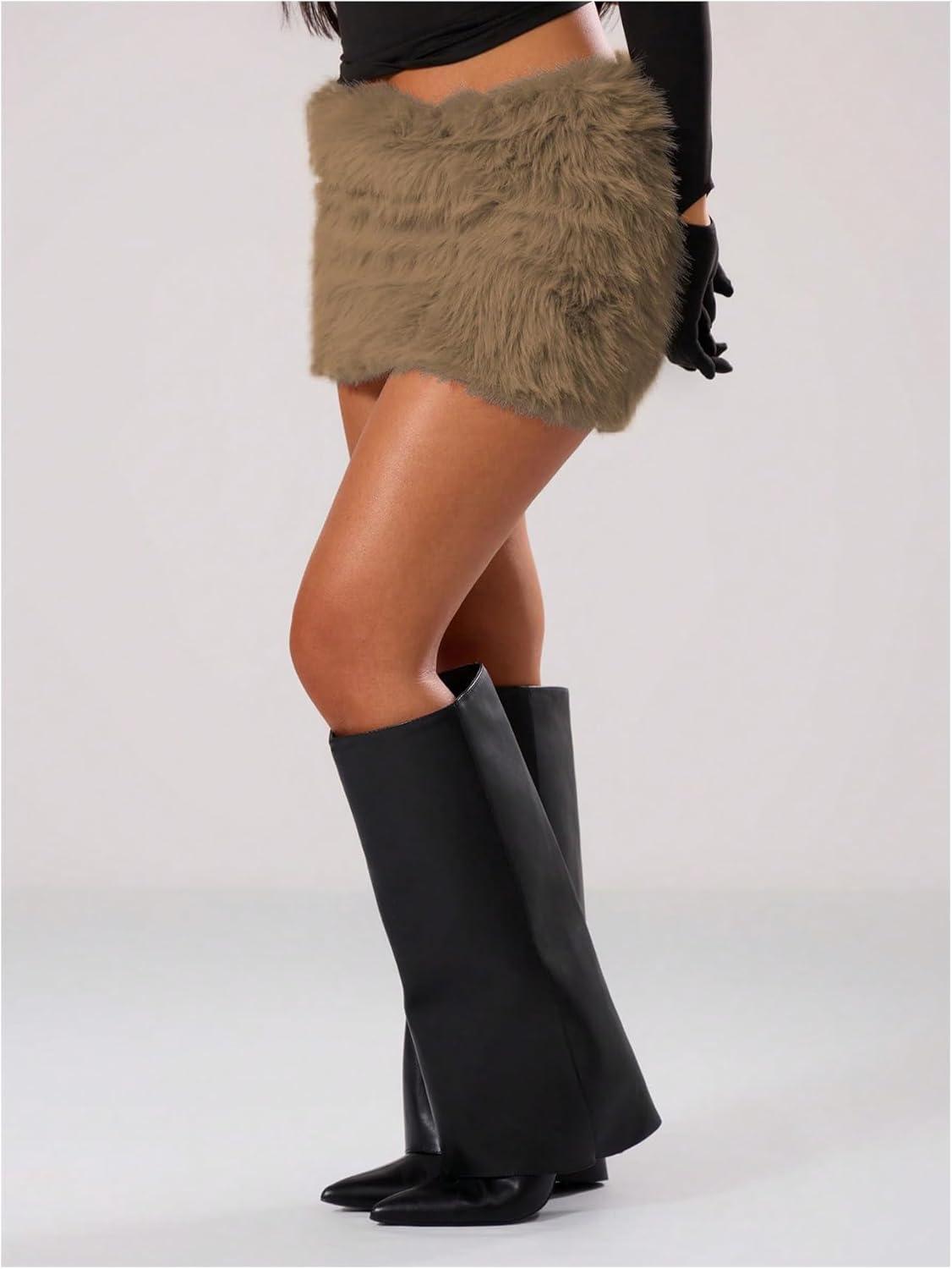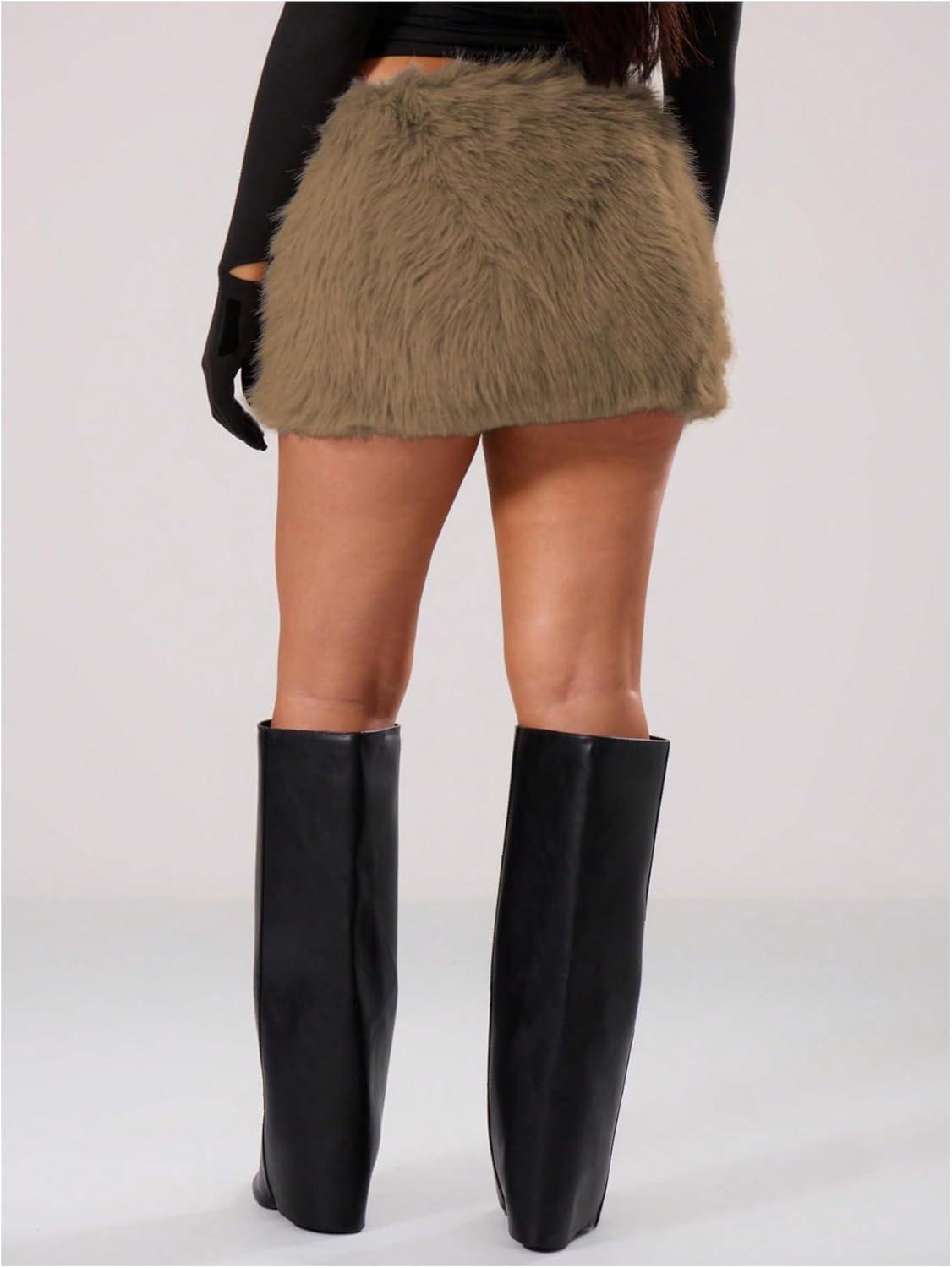 MakeMeChic Women's Brown Mini Skirts Fall Fuzzy Fur Bodycon Skirt Y2K Concert Outfits Cowboy Chic(Coffee Brown)
