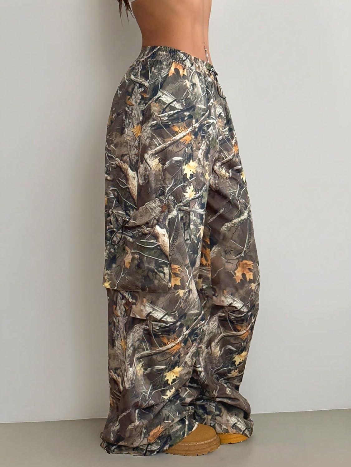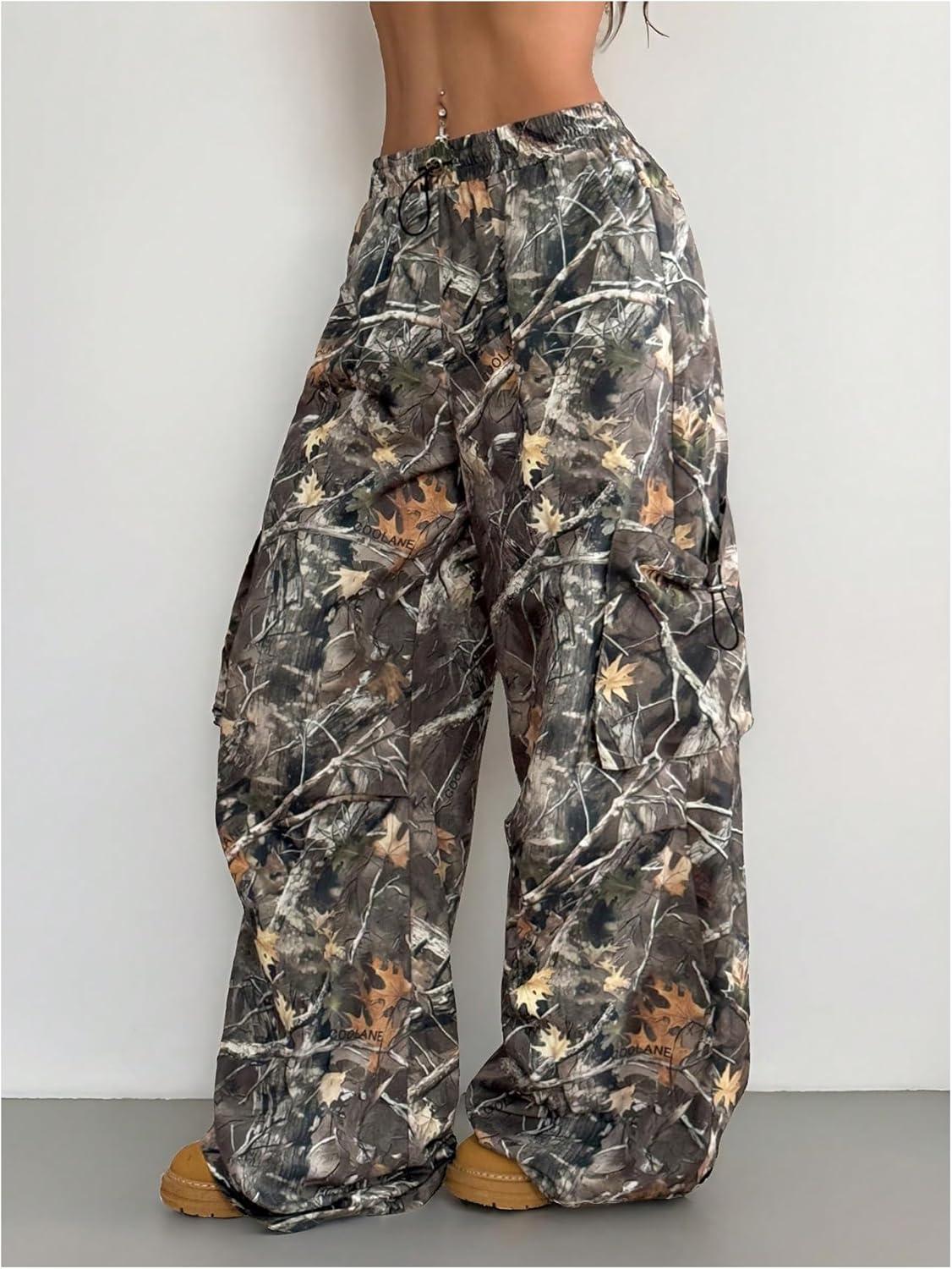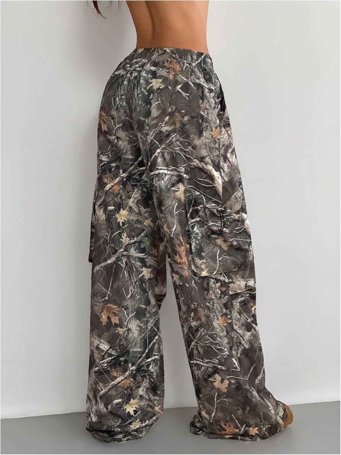 MakeMeChic Women's Camo Elastic Waist Drawstring Sweatpants Wide Leg Baggy Y2K Pants(Army Green)
