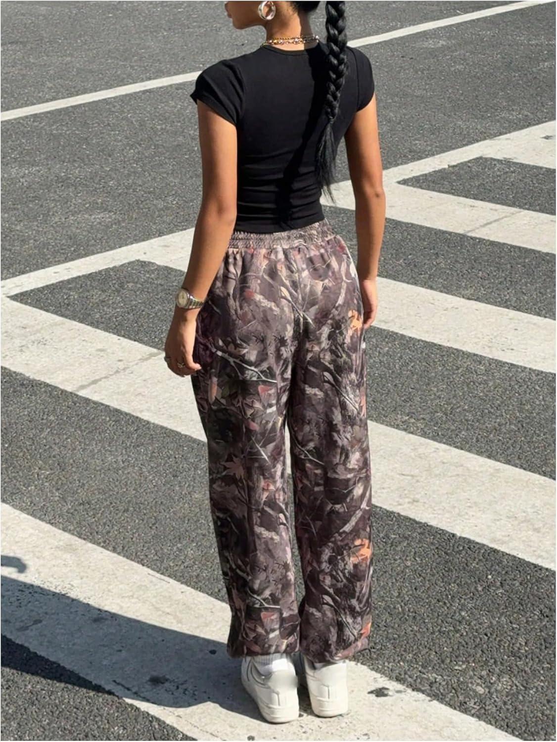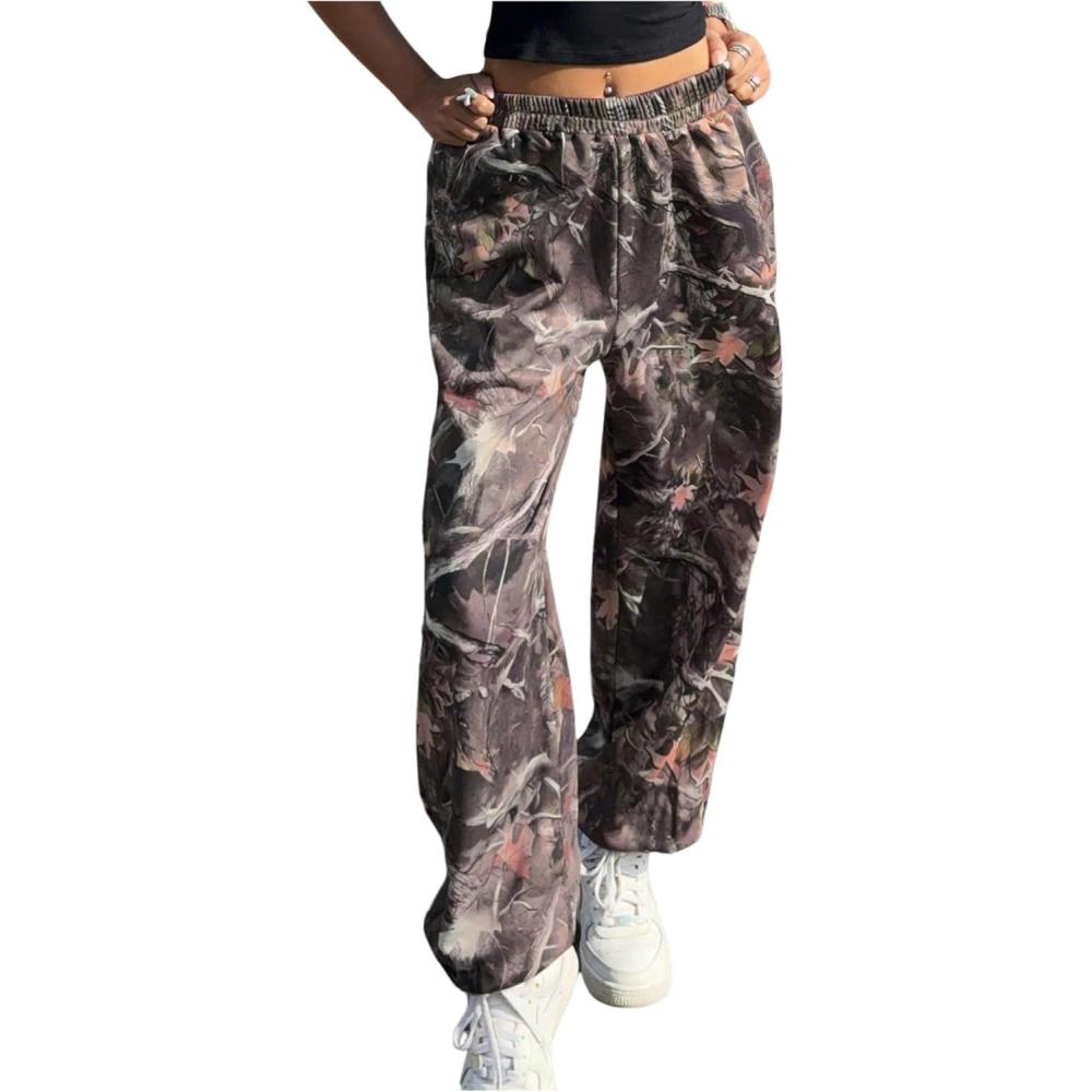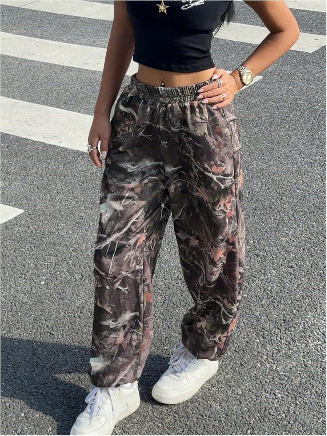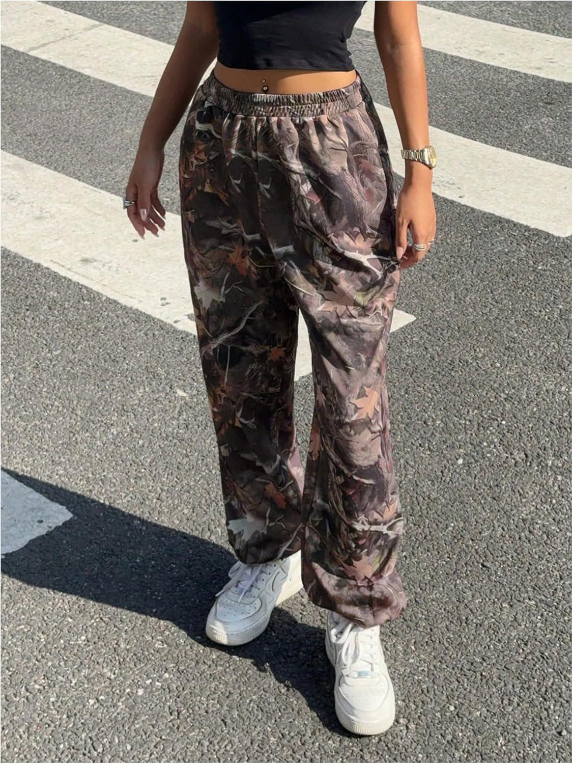 MakeMeChic Women's Camo Sweatpants Elastic Waist Casual Fall Loose Athletic Jogger Baggy Pants(Rust Brown)