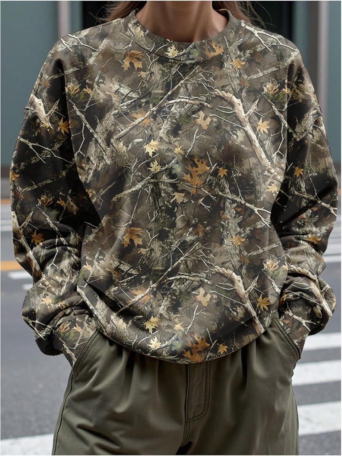 MakeMeChic Women’s Camo Sweatshirt Graphic Crew Neck Long Sleeve Drop Shoulder Oversized Pullover Top(Multicolor)