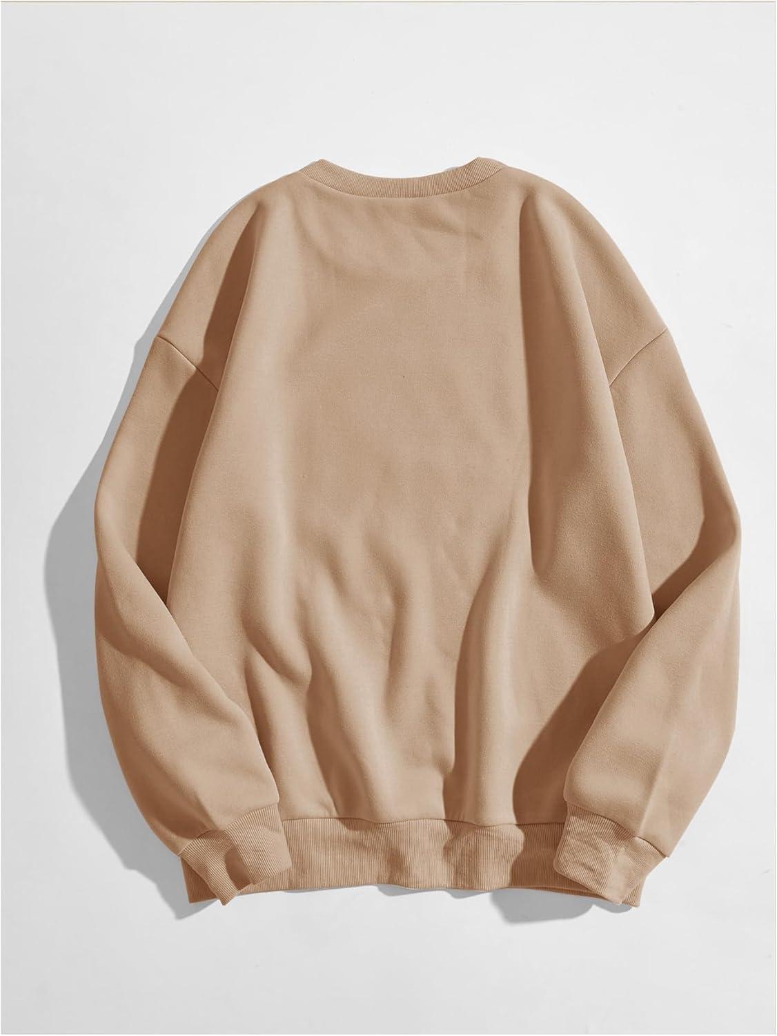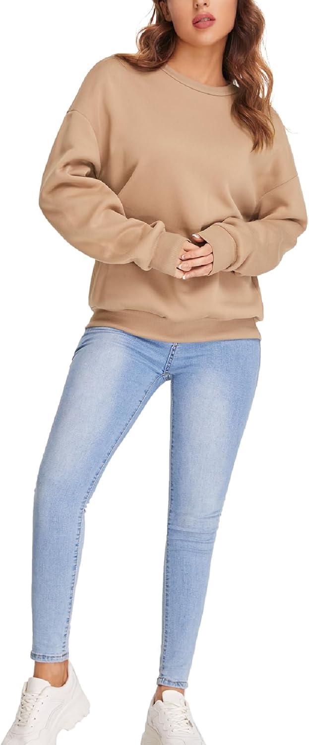 MakeMeChic Women’s Casual Long Sleeve Crew Neck Oversized Sweatshirt Pullover Tops(Khaki)