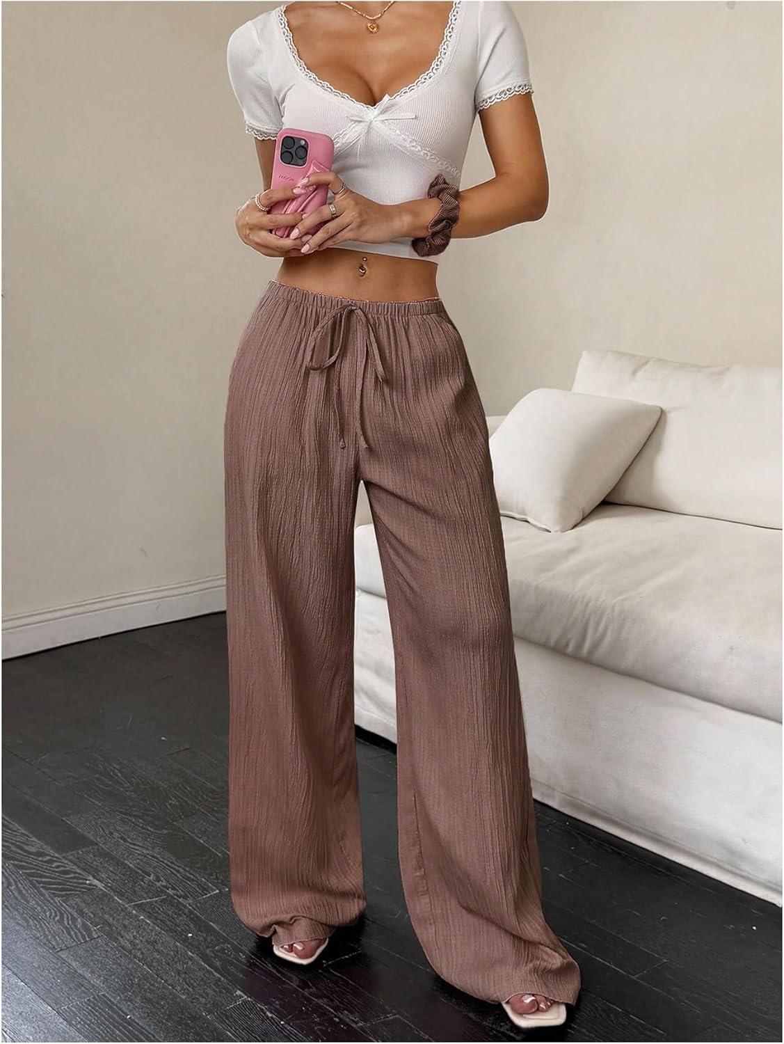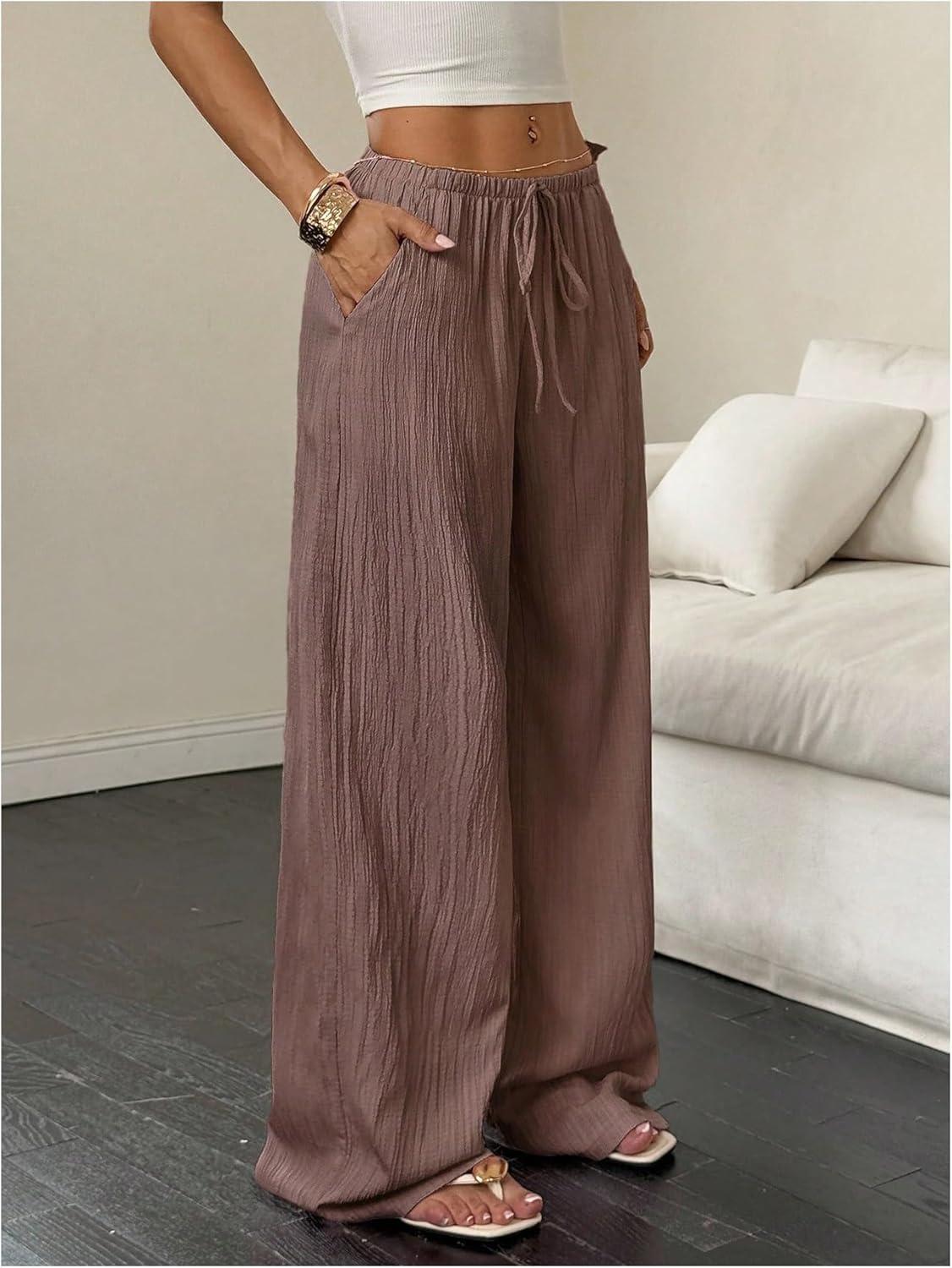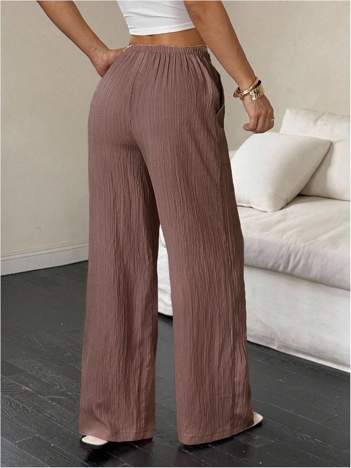 MakeMeChic Women’s Casual Wide Leg Pants Summer Beach Palazzo Pants(Dusty Pink)