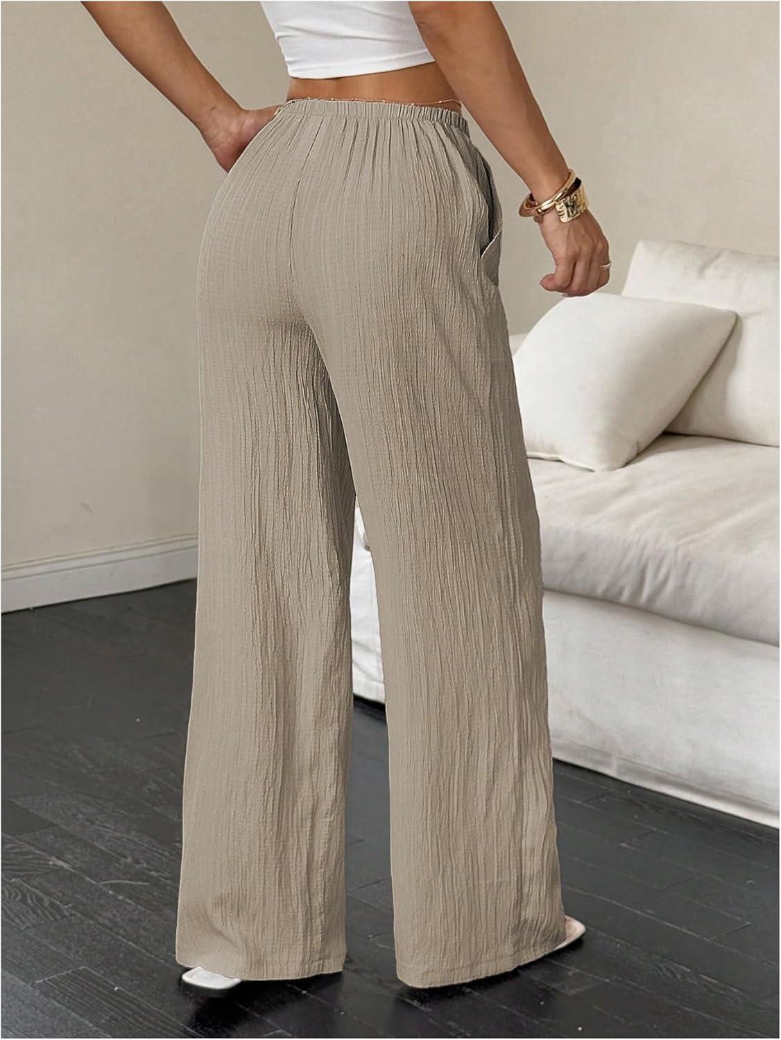 MakeMeChic Women’s Casual Wide Leg Pants Summer Beach Palazzo Pants(Khaki)