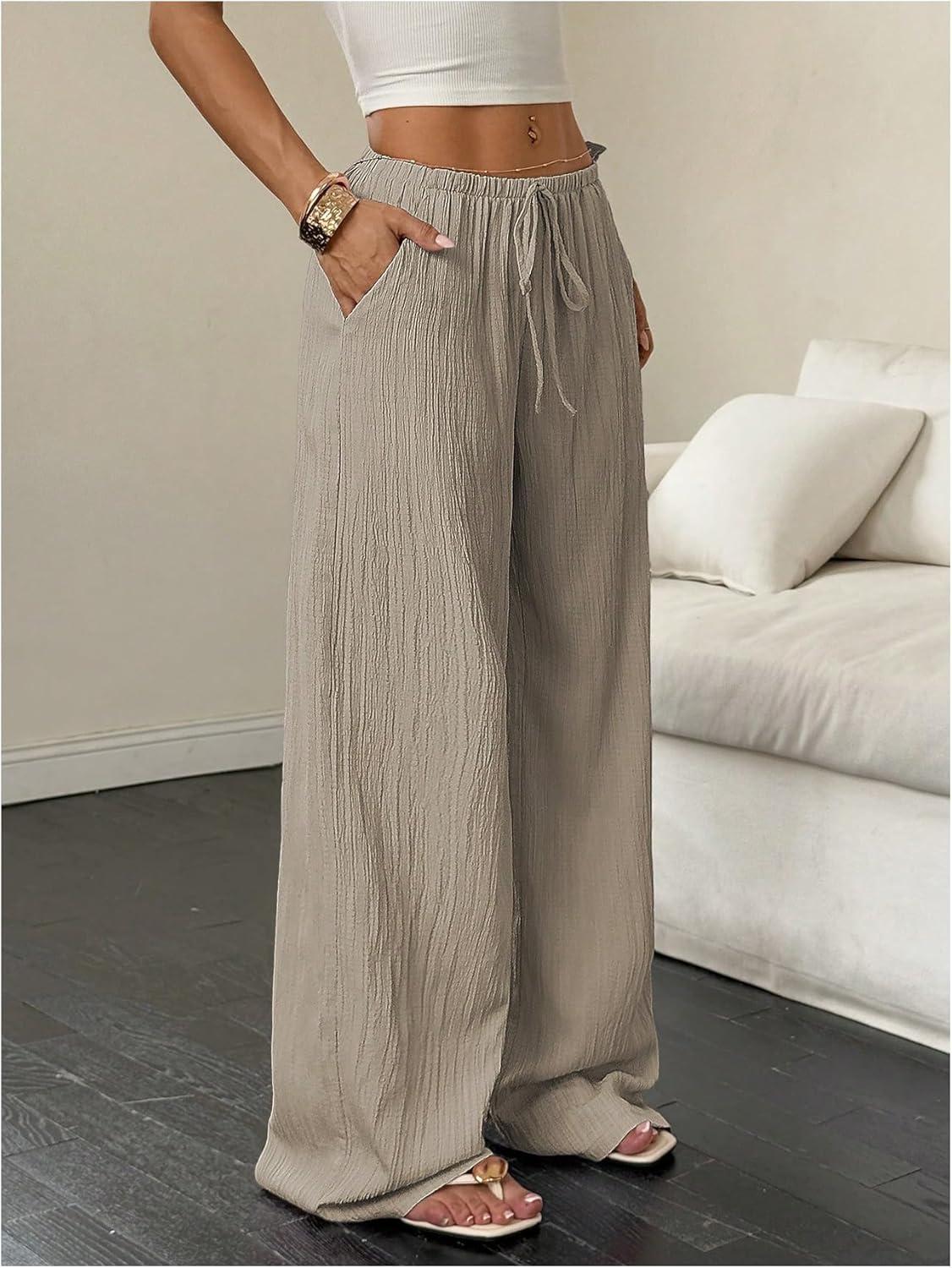 MakeMeChic Women’s Casual Wide Leg Pants Summer Beach Palazzo Pants(Grey)