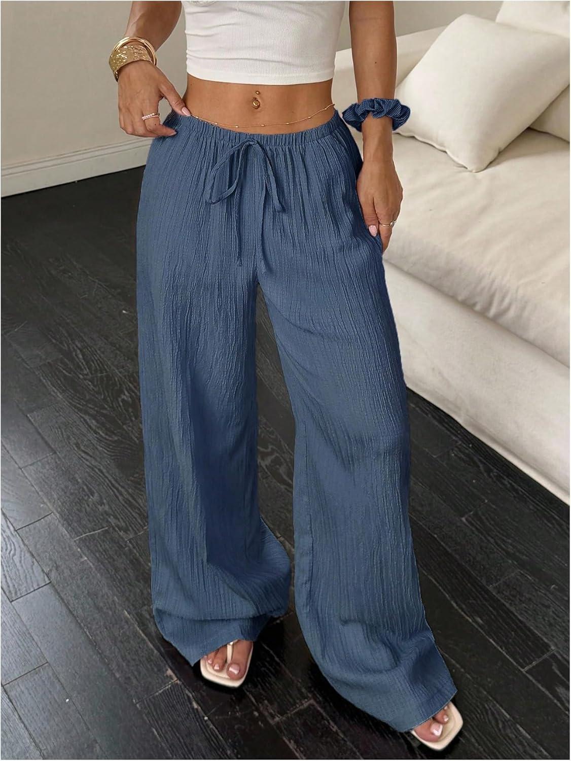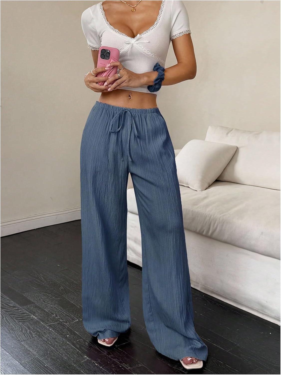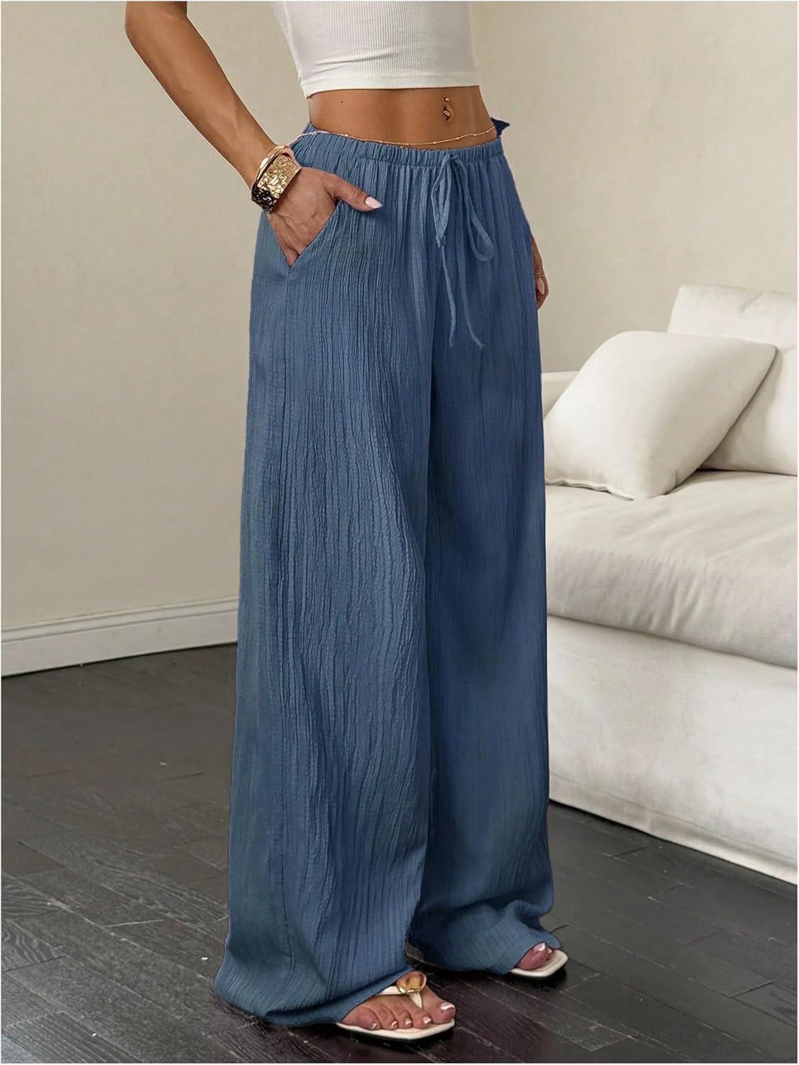 MakeMeChic Women’s Casual Wide Leg Pants Summer Beach Palazzo Pants(Teal Blue)