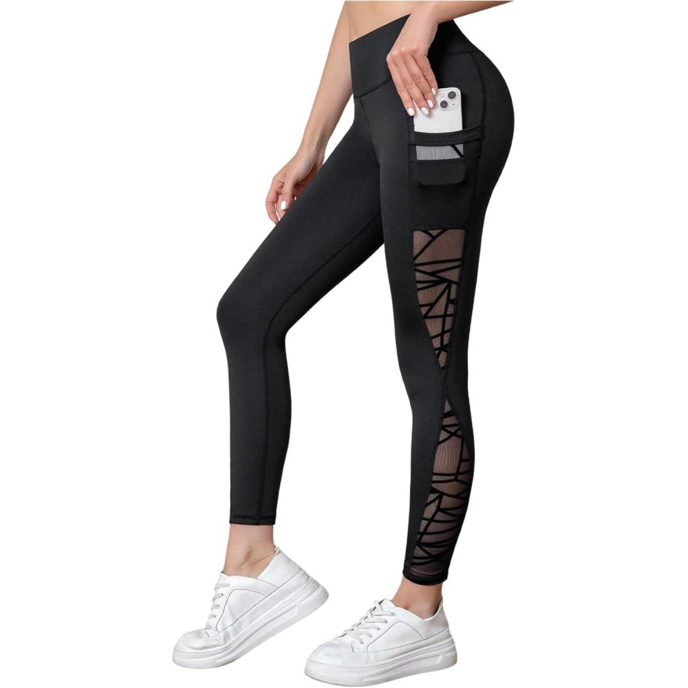 MakeMeChic Women’s Cut Out Sexy Leggings Criss Cross Skinny Pants Party Clubwear(Black Sheer Mesh)