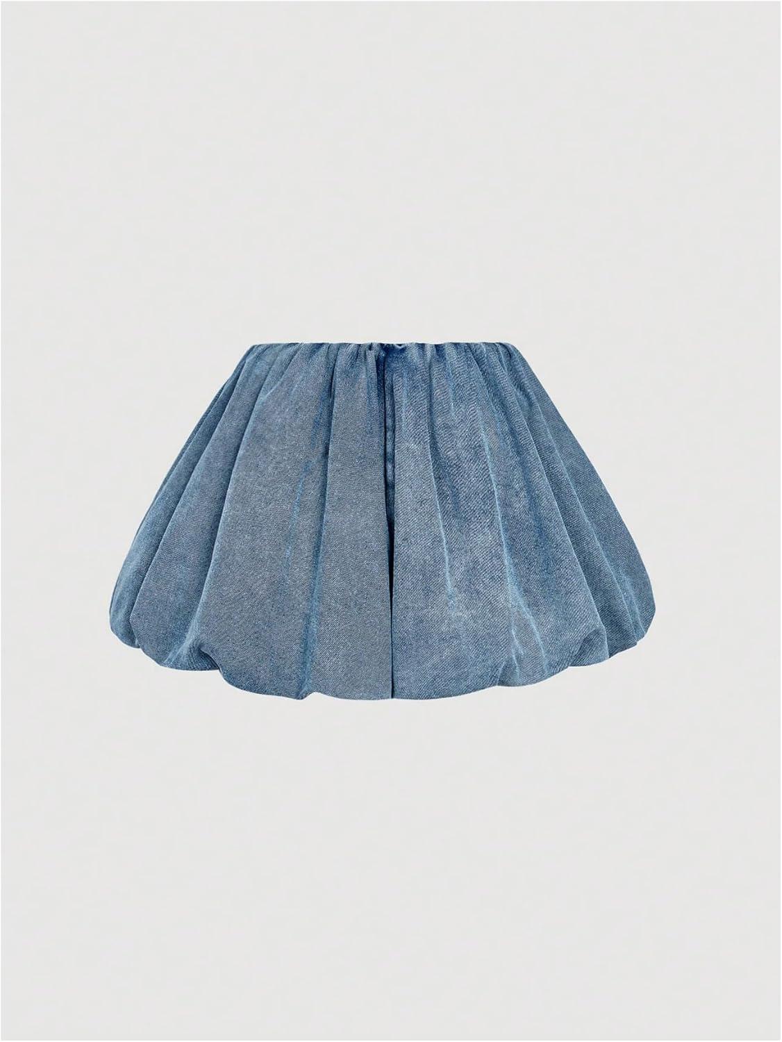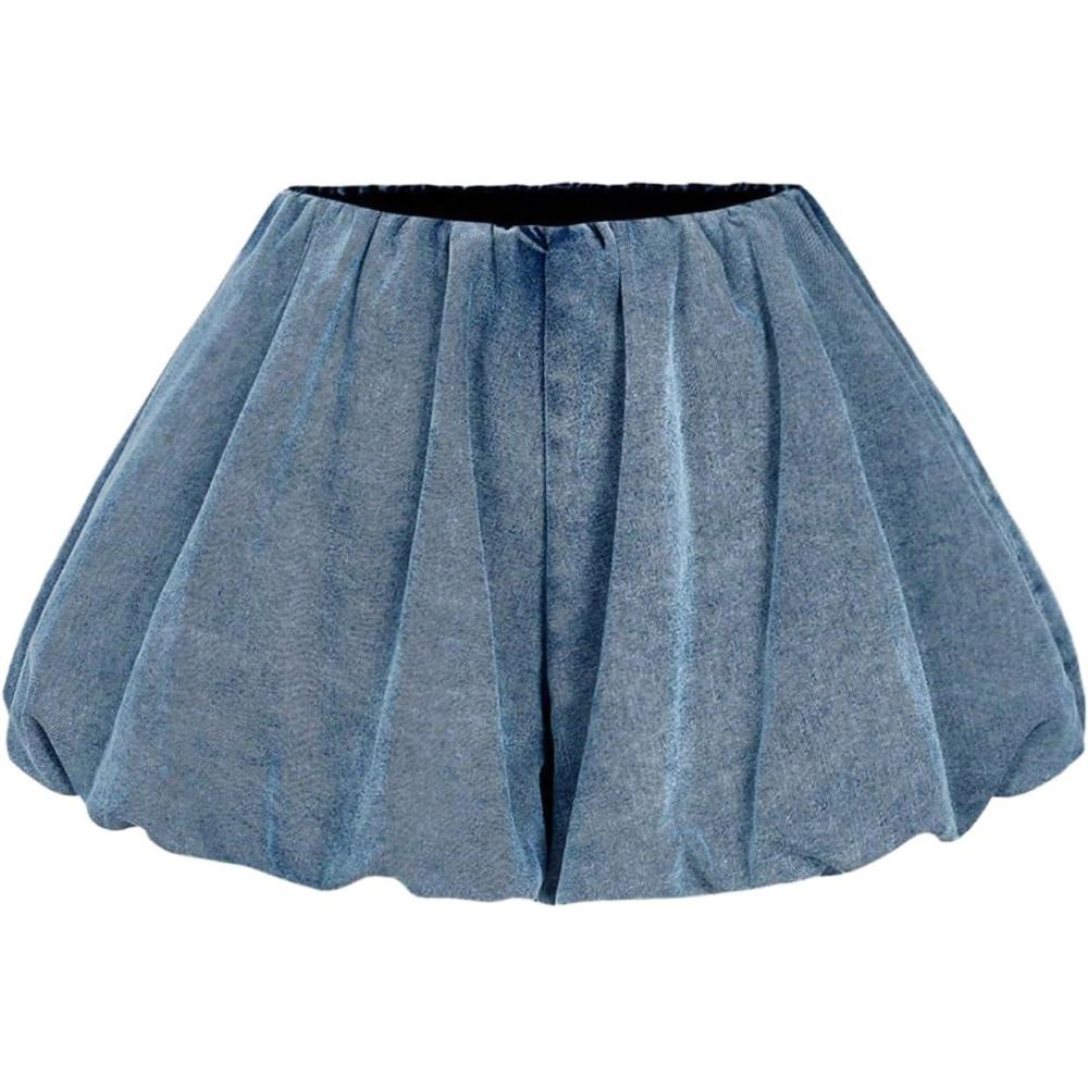 MakeMeChic Women’s Denim Shorts High Waisted Ruffle Summer Bubble Jean Shorts(Light Blue)