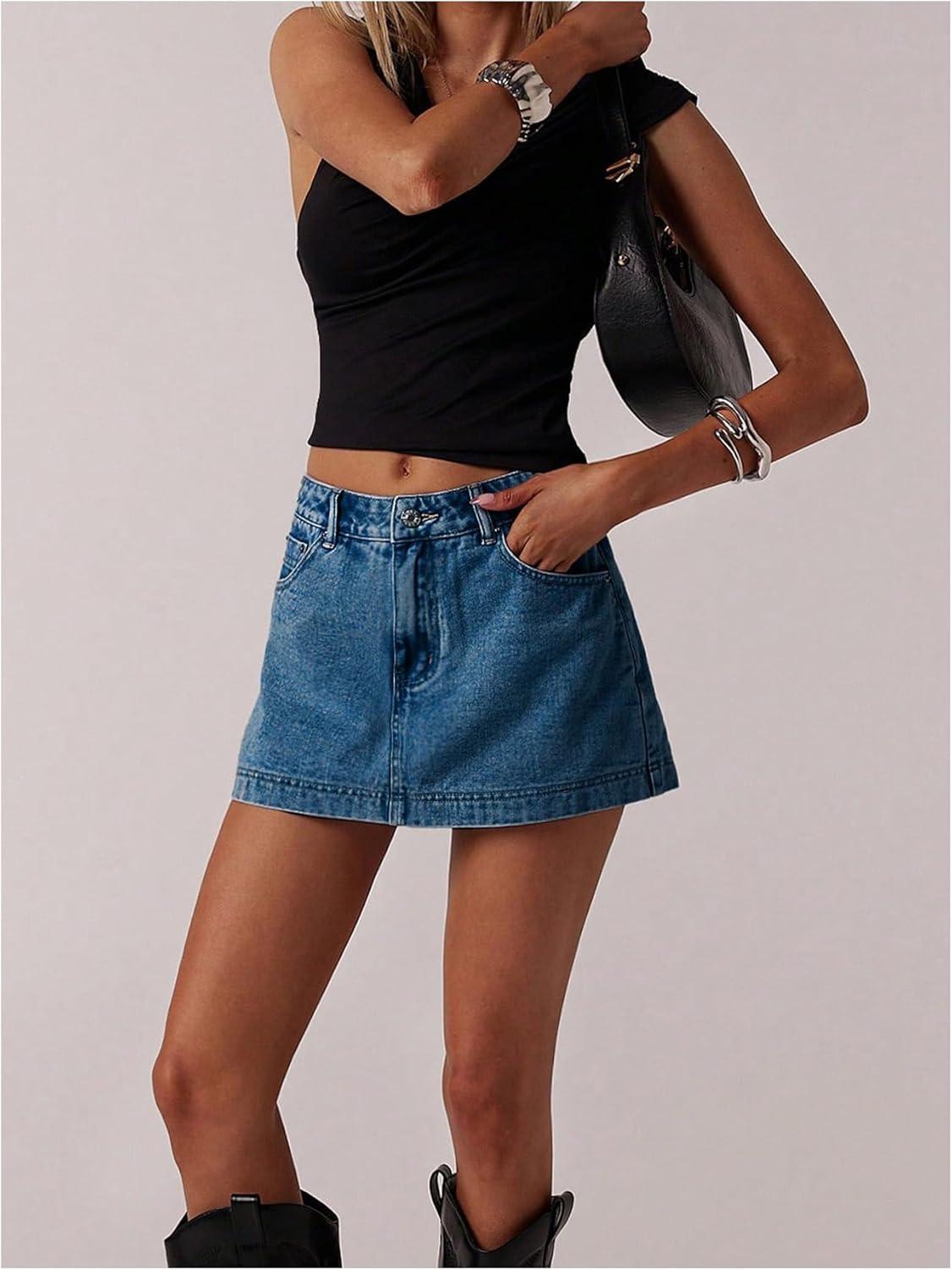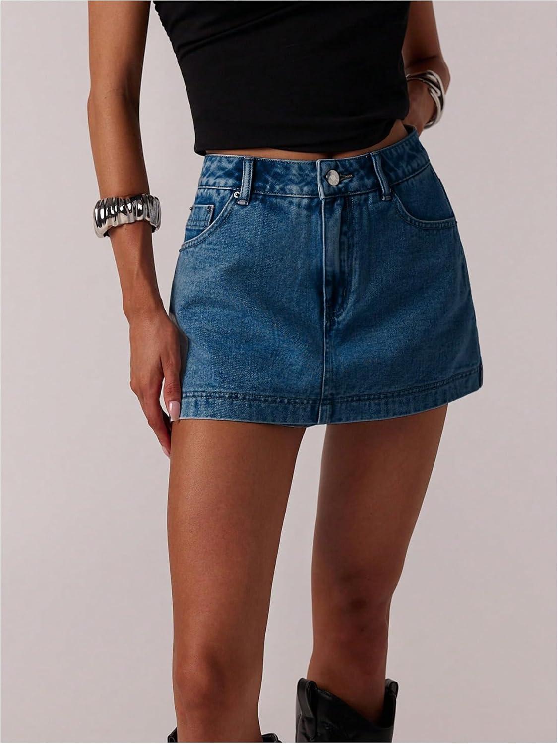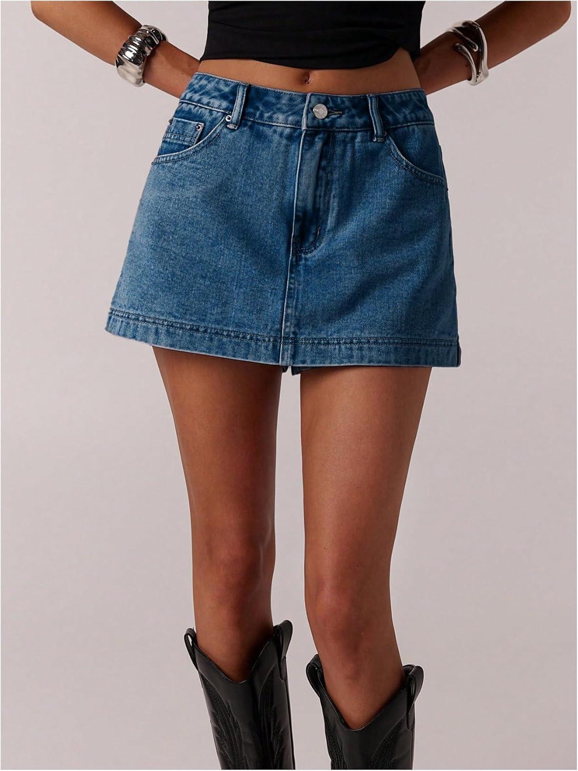 MakeMeChic Women’s Denim Skorts Straight Leg Zip Fly Vintage 90s Summer Jean Shorts Streetwear(Blue)