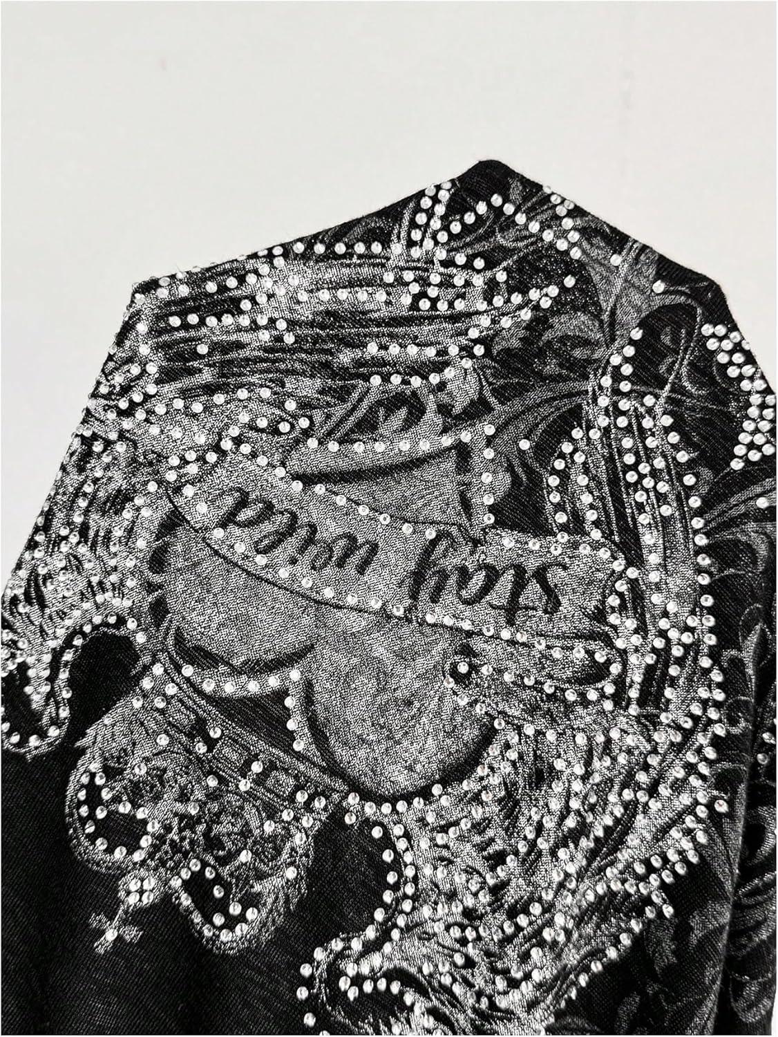 MakeMeChic Women's Emo Grunge Shirts Gothic Alt Clothes Graphic Tee Y2k Off The Shoulder Tops(Black Rhinestone)