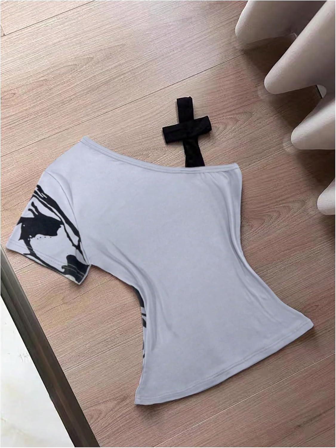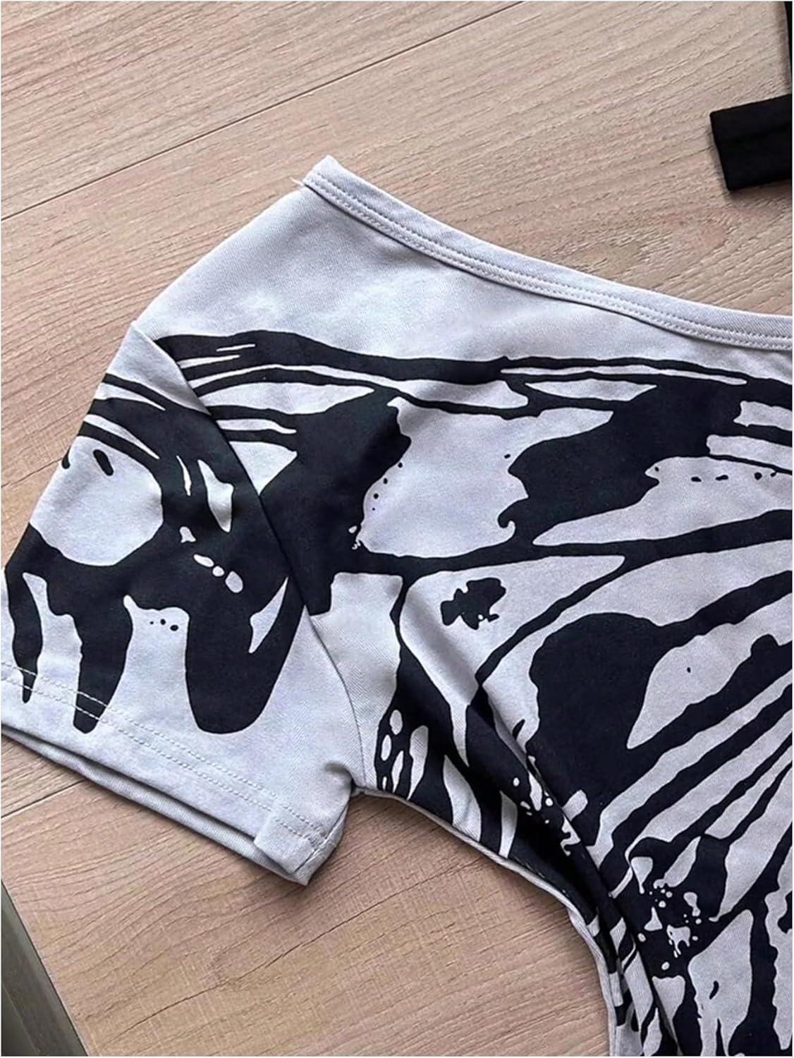 MakeMeChic Women's Emo Shirts Gothic Grunge Tops Alt Clothes Y2k Graphic Tees(Grey)