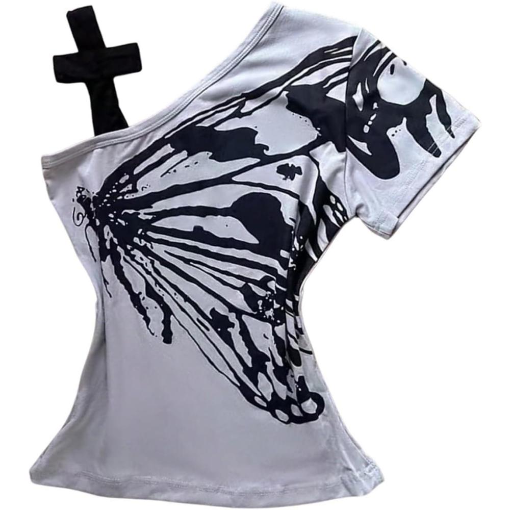 MakeMeChic Women’s Emo Shirts Gothic Grunge Tops Alt Clothes Y2k Graphic Tees(Grey)