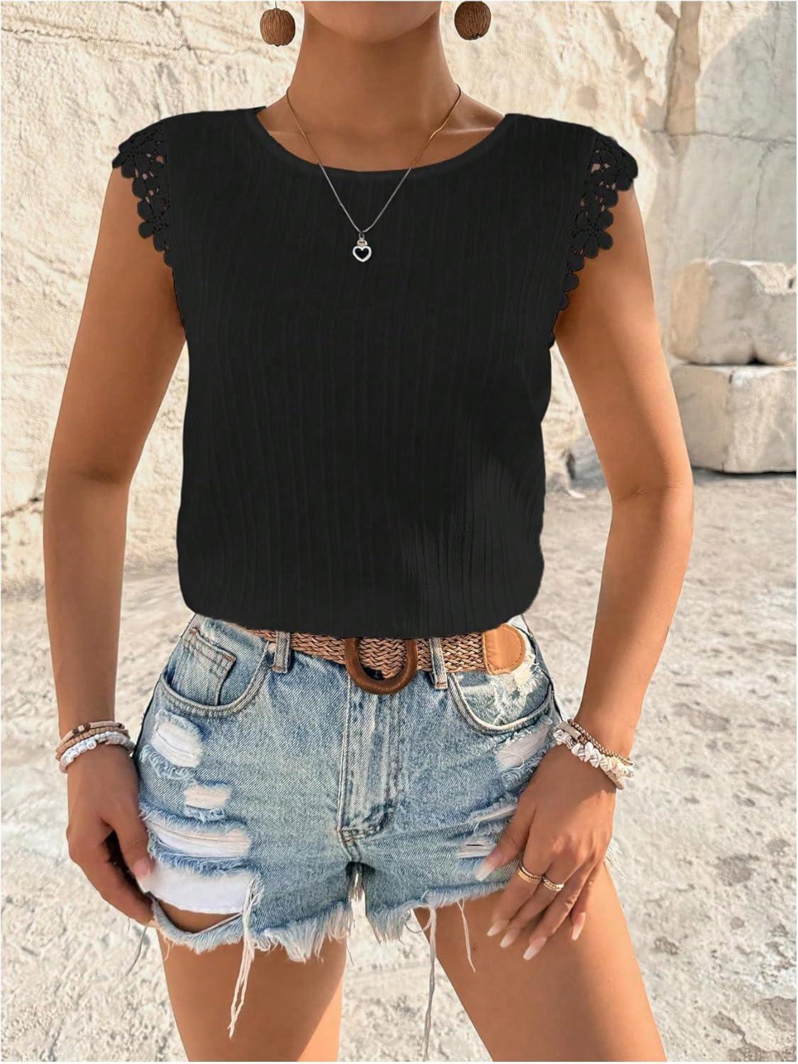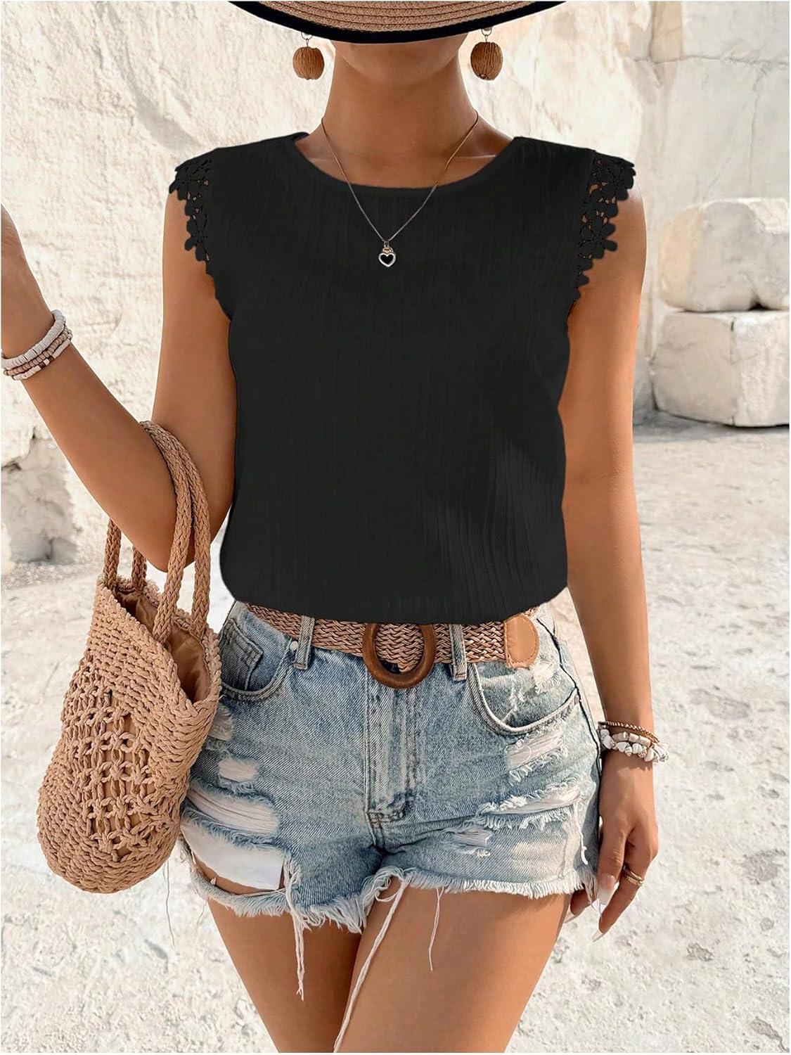 MakeMeChic Women’s Lace Trim Tops Tie Backless Sleeveless Crew Neck Summer Shirts(Black)