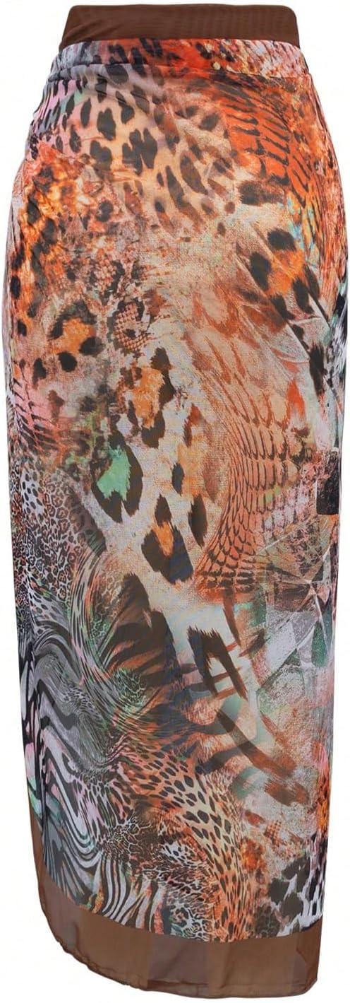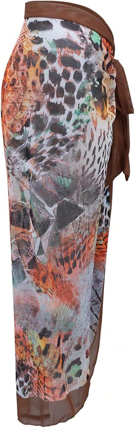 MakeMeChic Women’s Leopard Print Tie Side Coverup Skirt Contrast Binding Beach Skirts