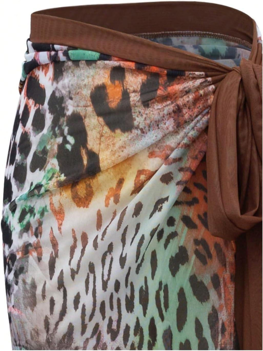 MakeMeChic Women's Leopard Print Tie Side Coverup Skirt Contrast Binding Beach Skirts