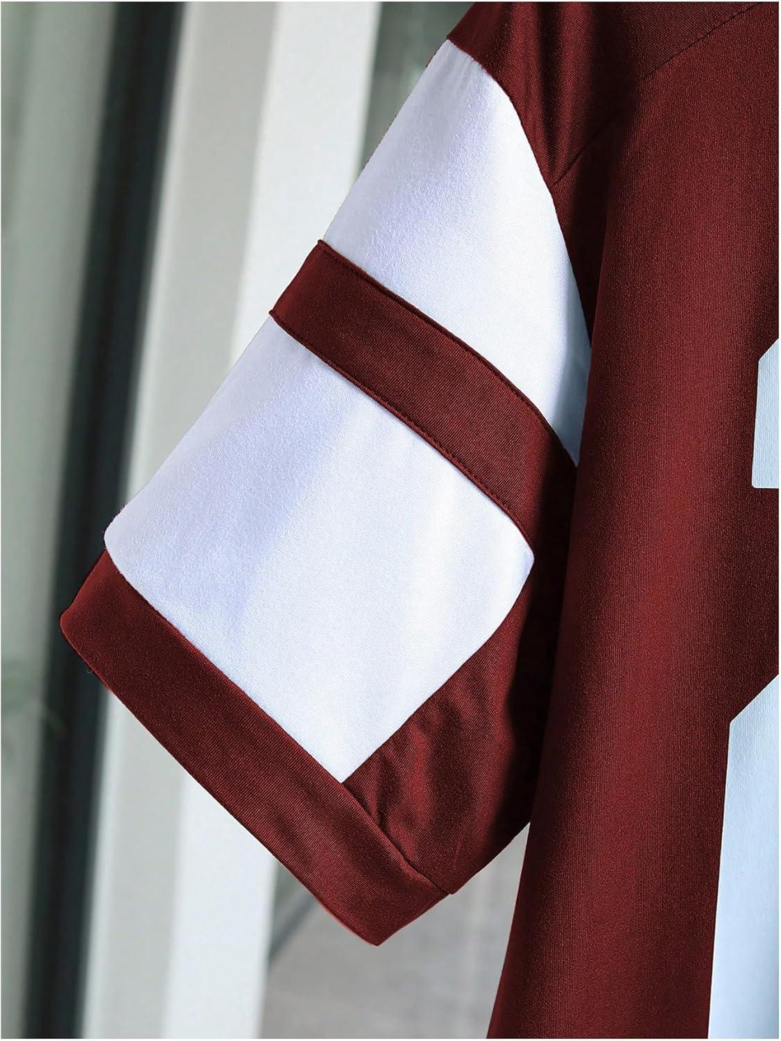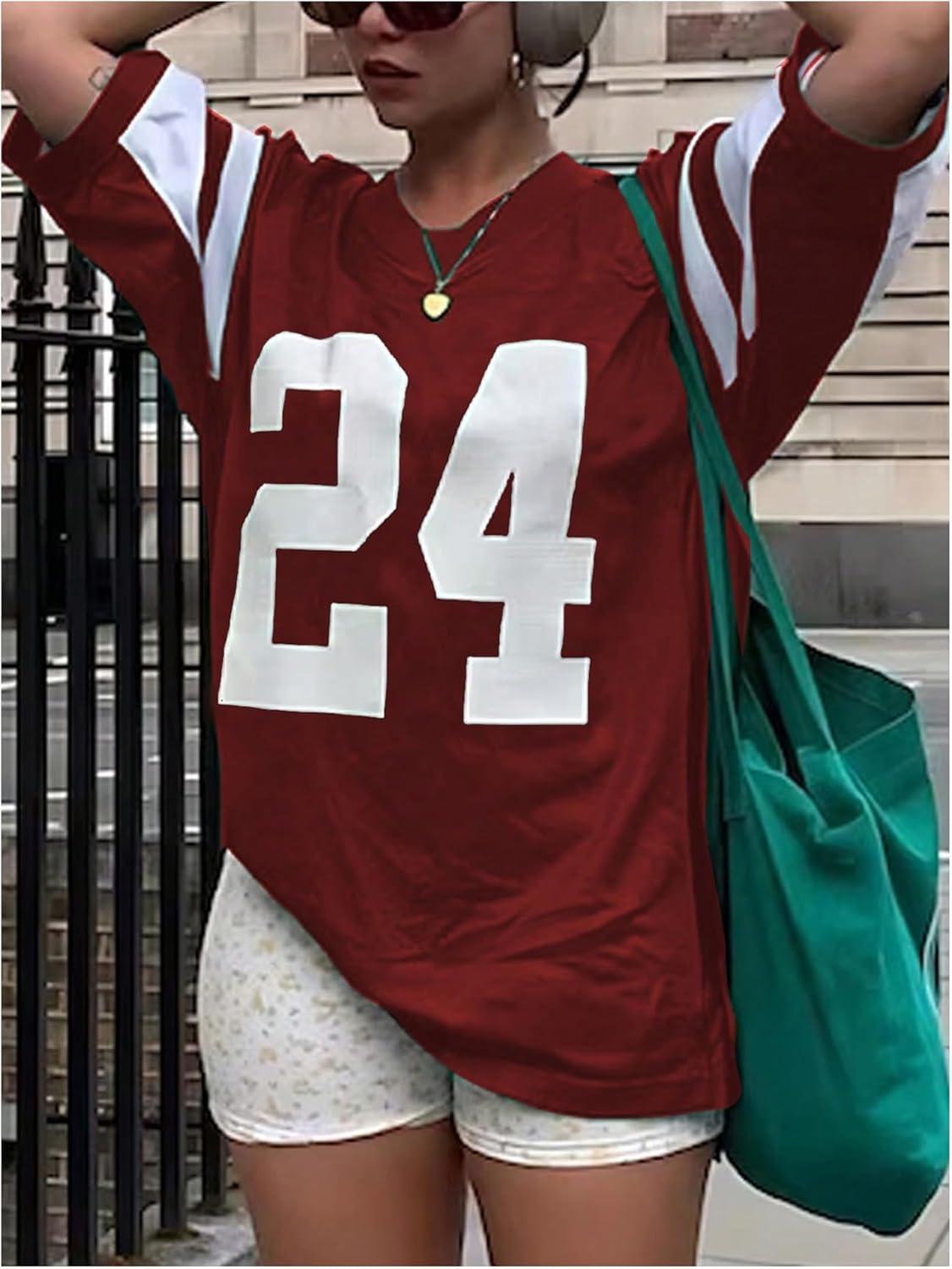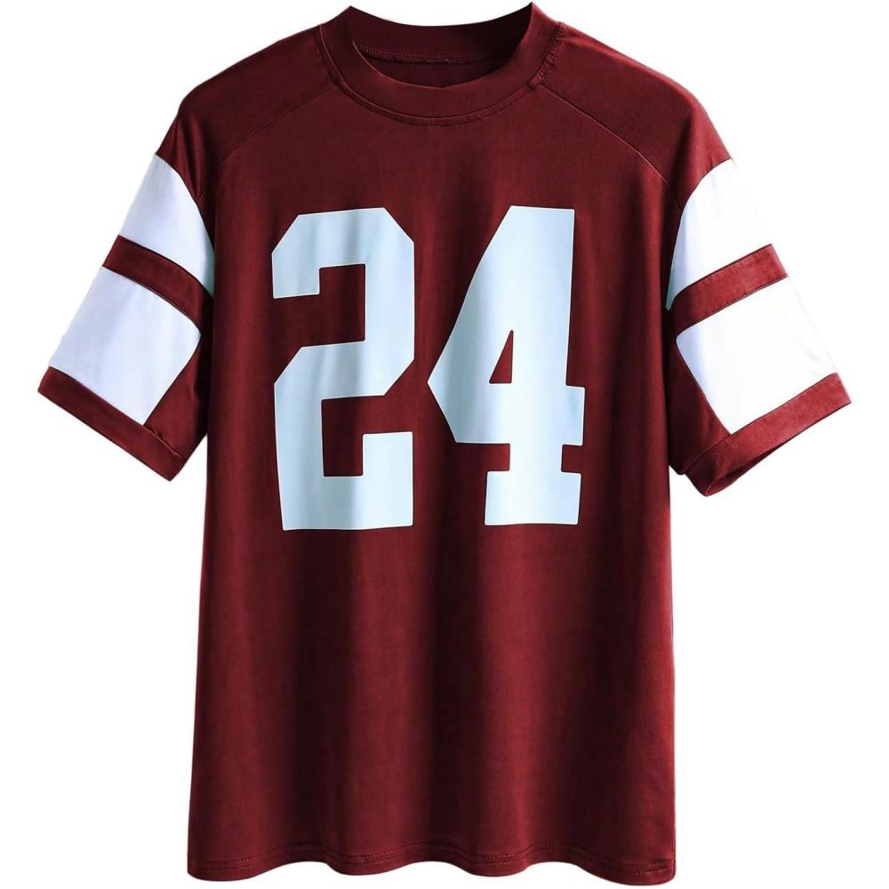 MakeMeChic Women’s Number Graphic Jersey Top Crew Neck Short Sleeve Oversized Y2k T Shirt(Burgundy)