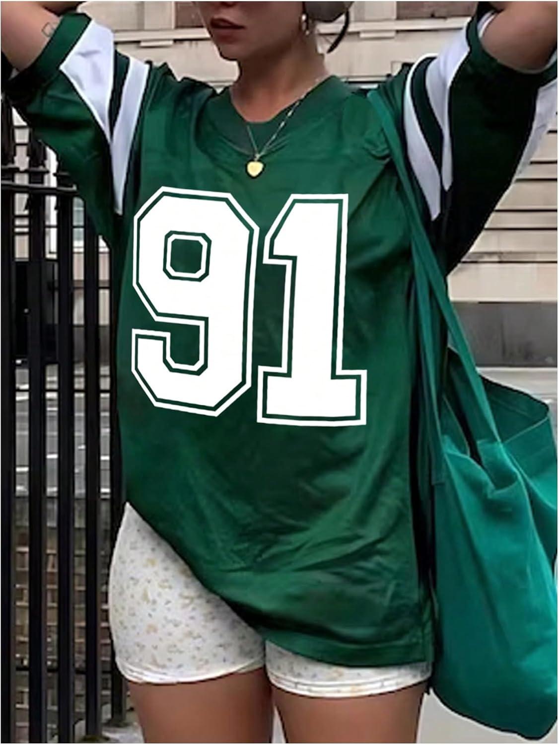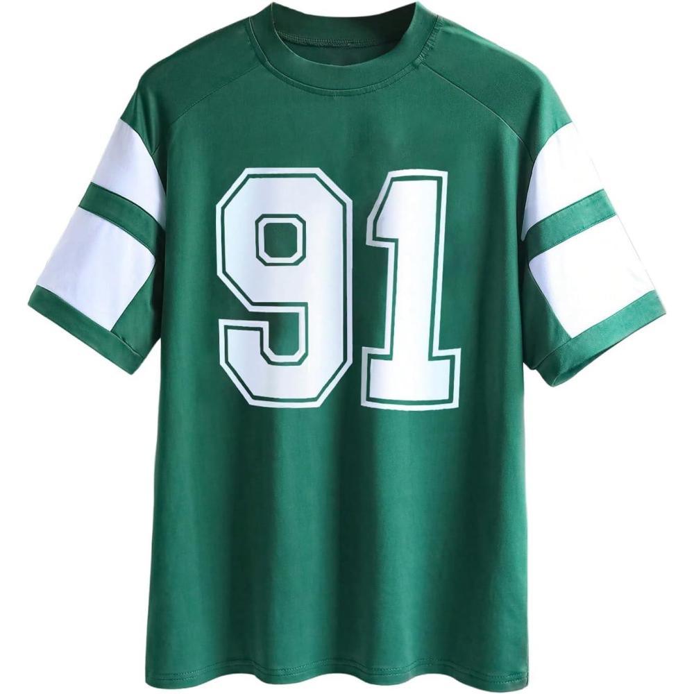 MakeMeChic Women’s Number Graphic Jersey Top Crew Neck Short Sleeve Oversized Y2k T Shirt(Dark Green)