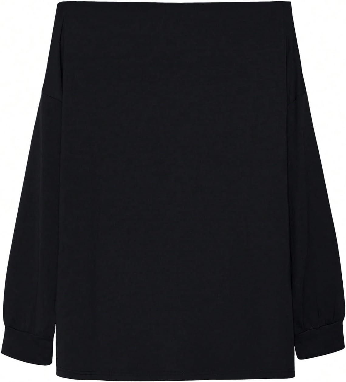 MakeMeChic Women's Off The Shoulder Sweatshirt Tops Y2k Oversized Graphic T Shirt(Black)