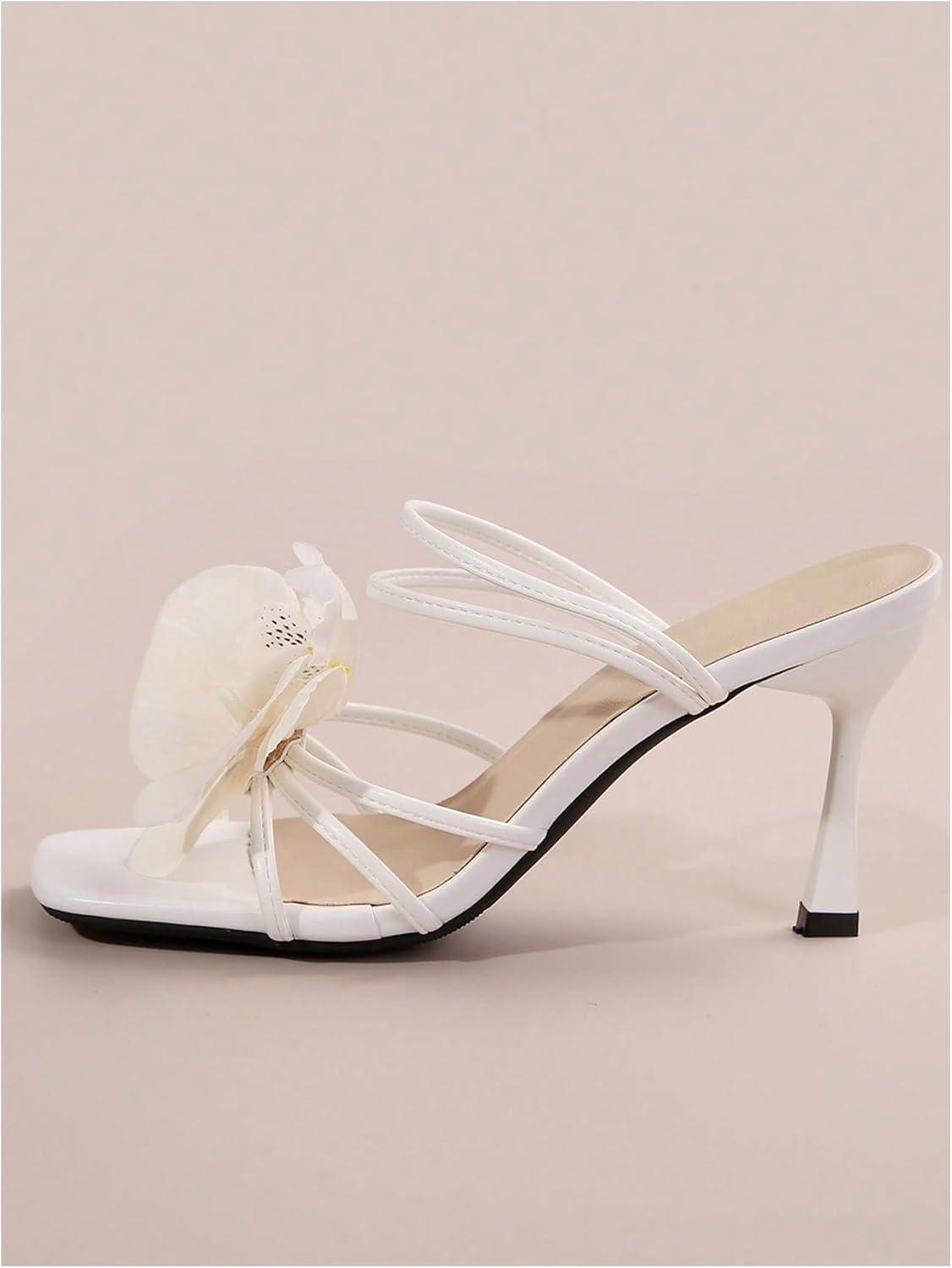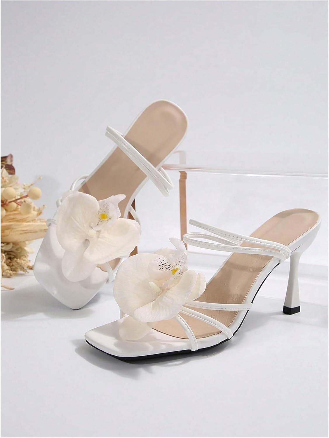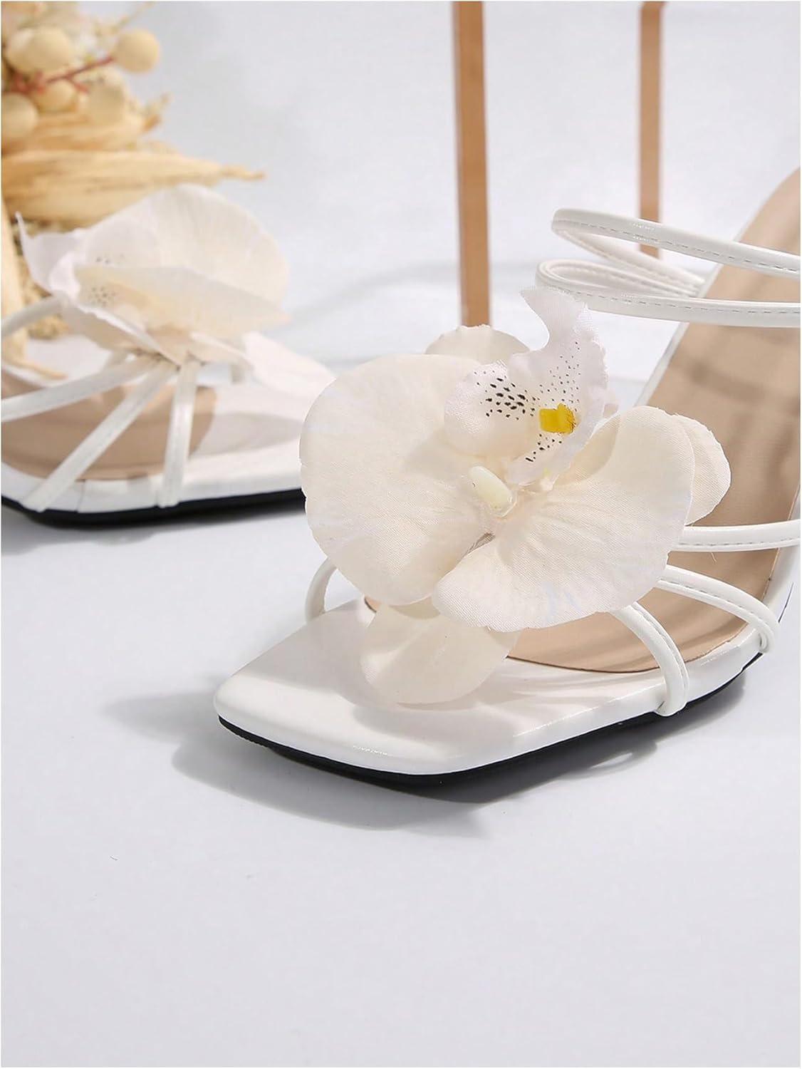 MakeMeChic Women's Open Toe Floral Kitten Heels Flower Summer Beach Sandals(Solid White)
