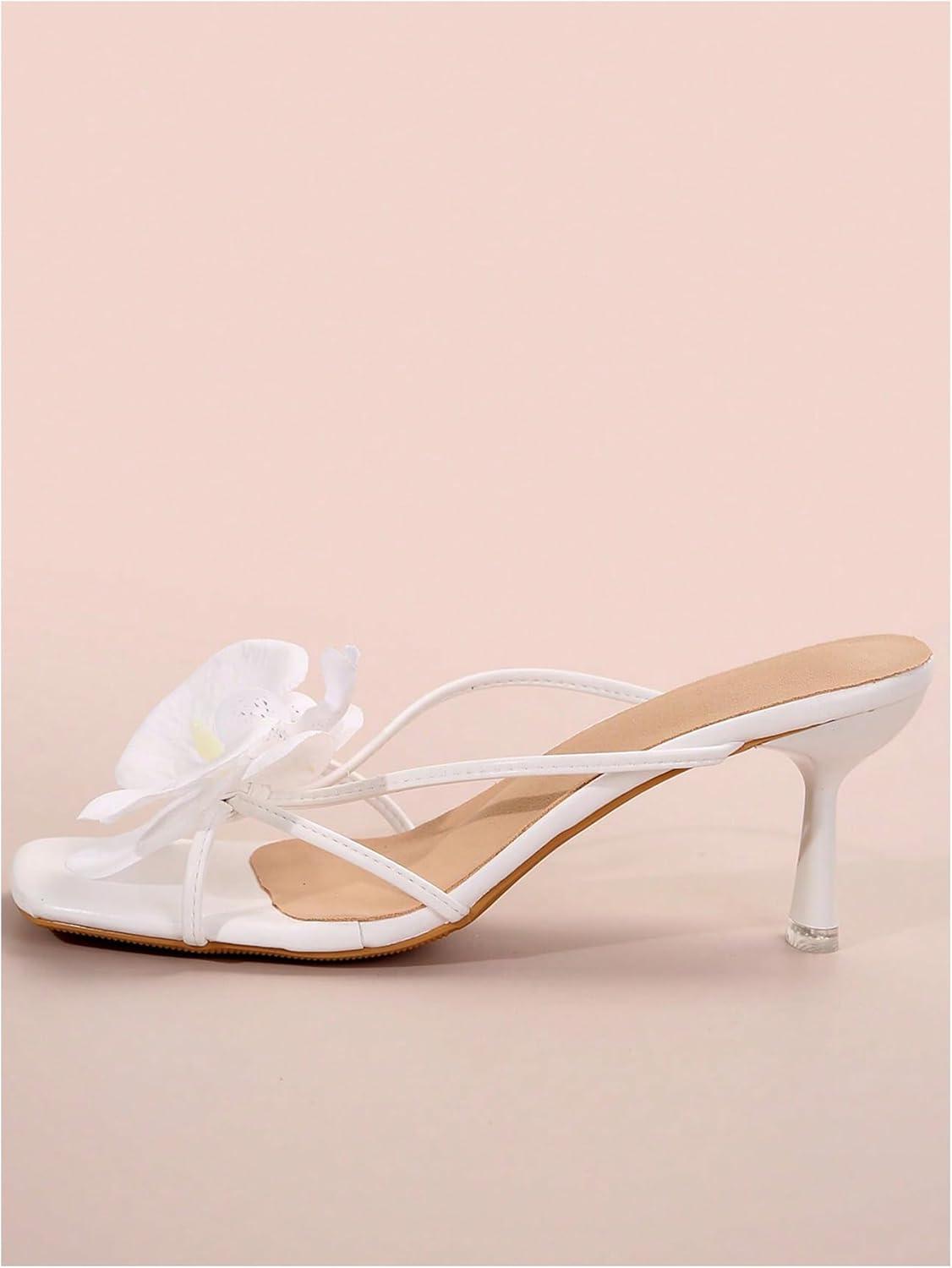 MakeMeChic Women’s Open Toe Floral Kitten Heels Flower Summer Beach Sandals(White Solid)
