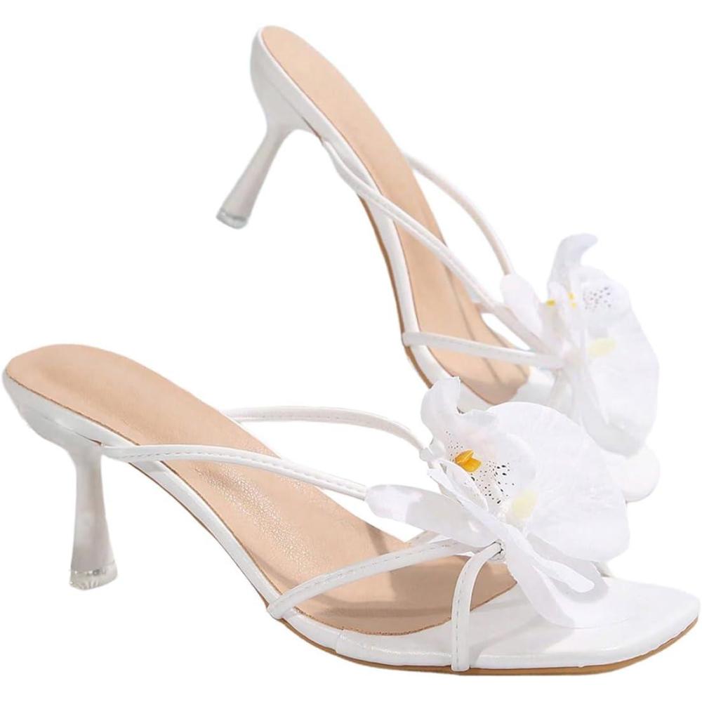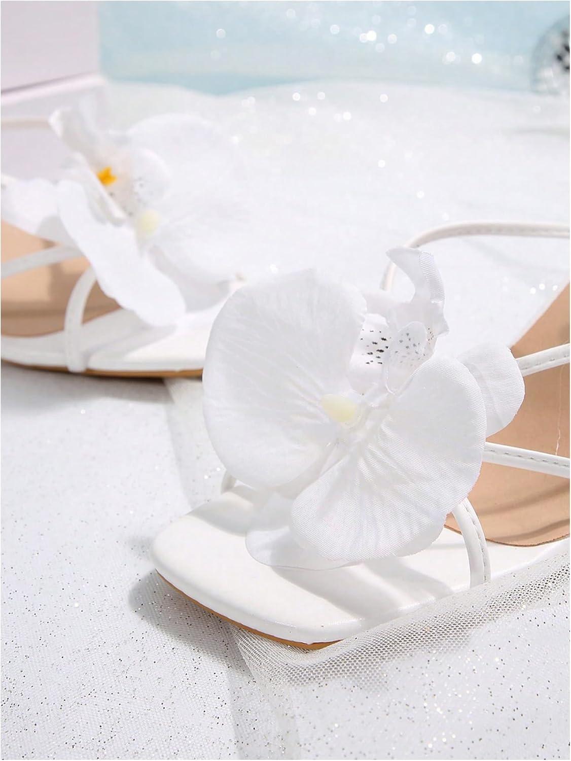 MakeMeChic Women's Open Toe Floral Kitten Heels Flower Summer Beach Sandals(White Solid)