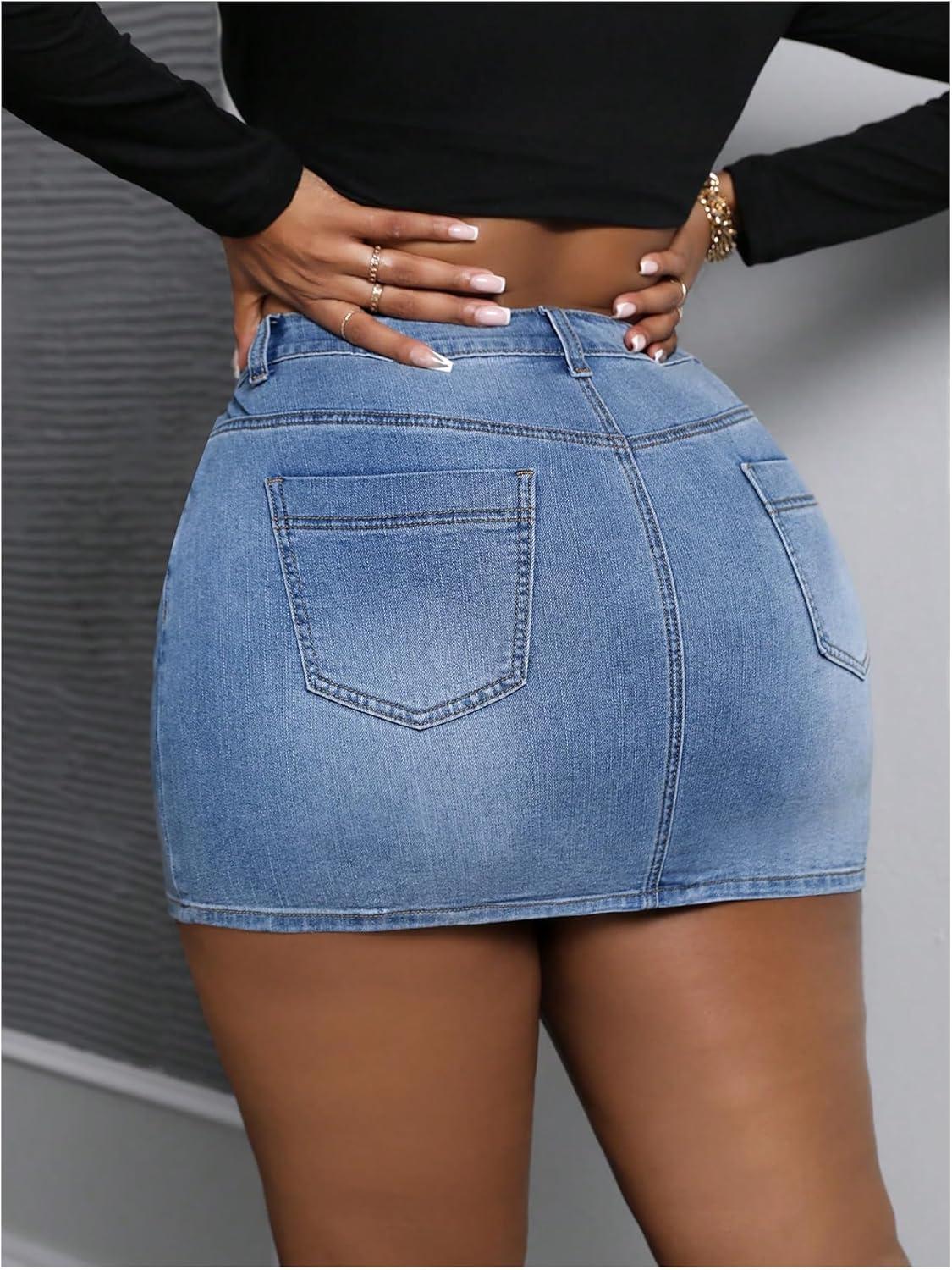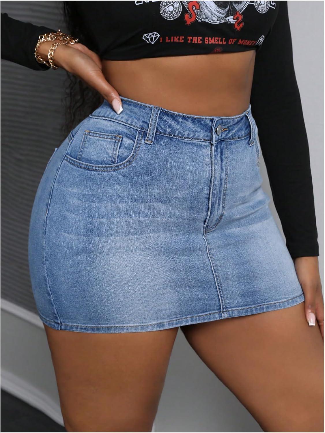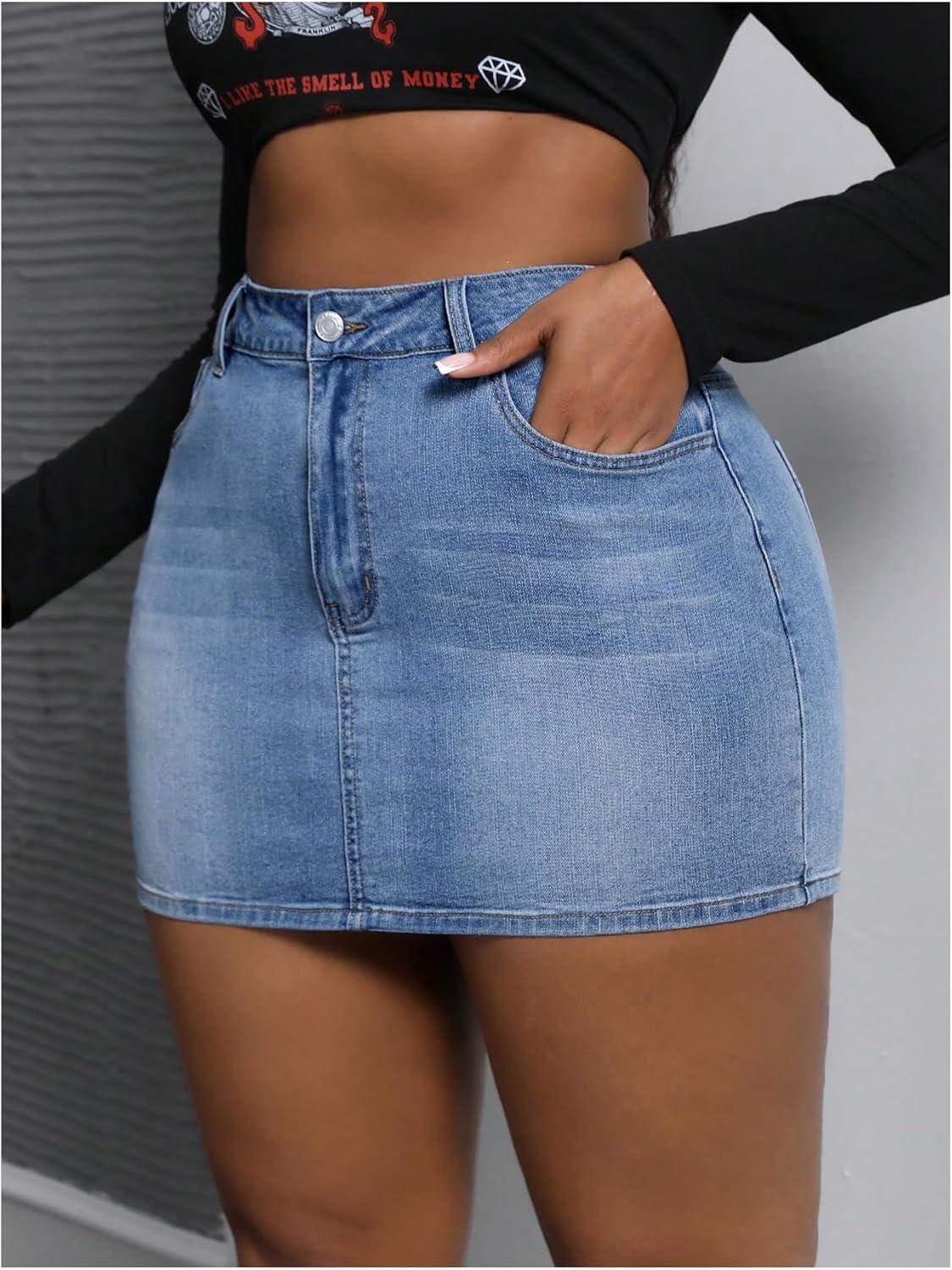 MakeMeChic Women’s Plus Size Denim Skirt Mini High Waisted Zipper Bodycon Jean Skirt(Medium Wash)