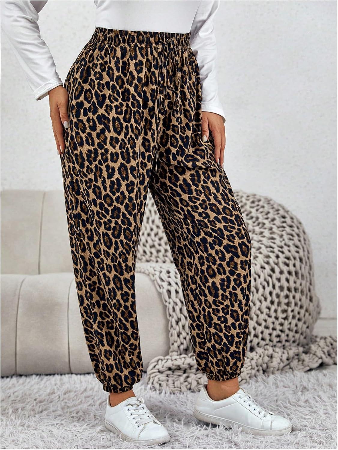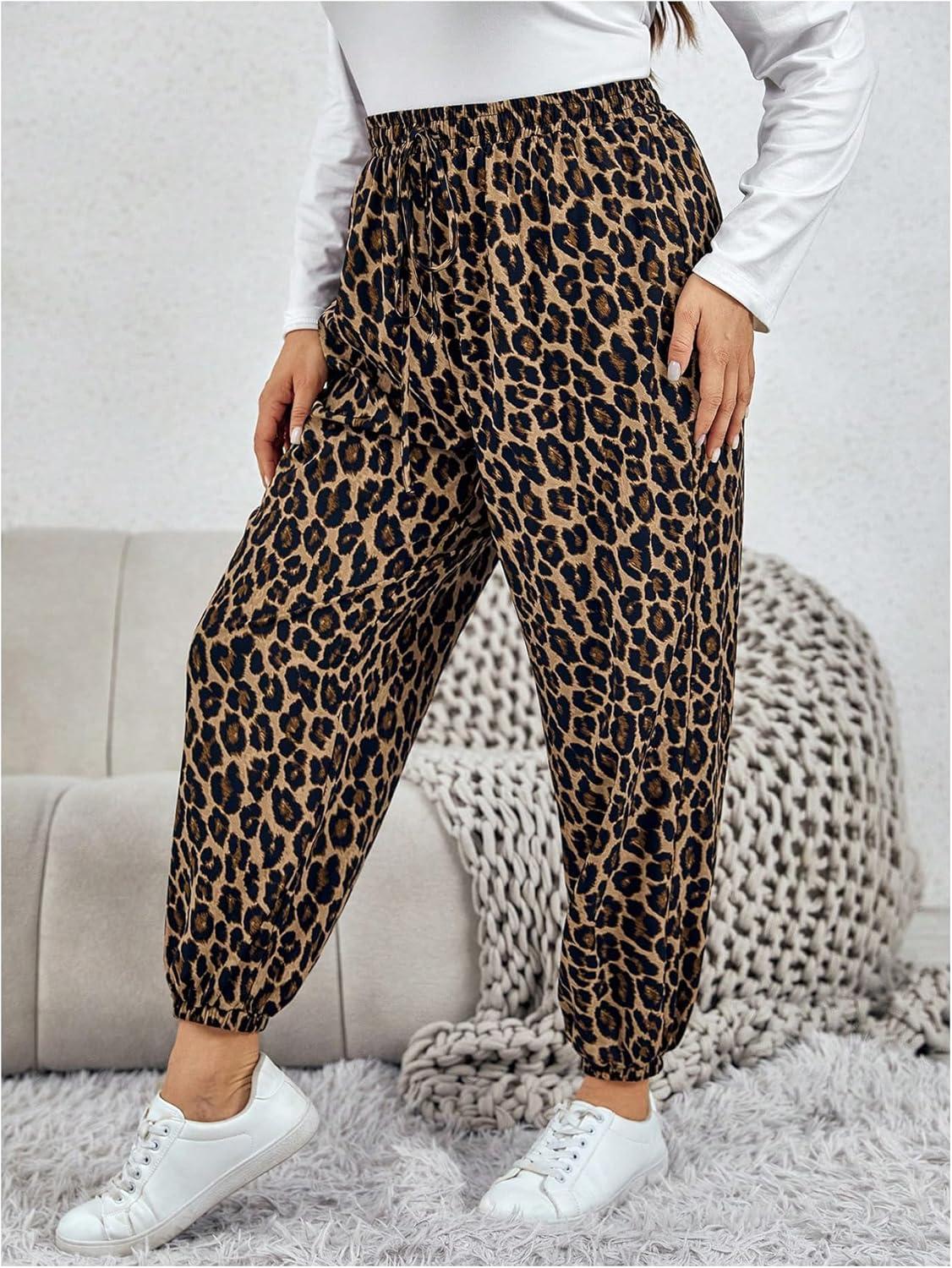 MakeMeChic Women's Plus Size Leopard Print Carrot Trousers Elastic Waist Drawstring Jogger Pants(Multicolor)
