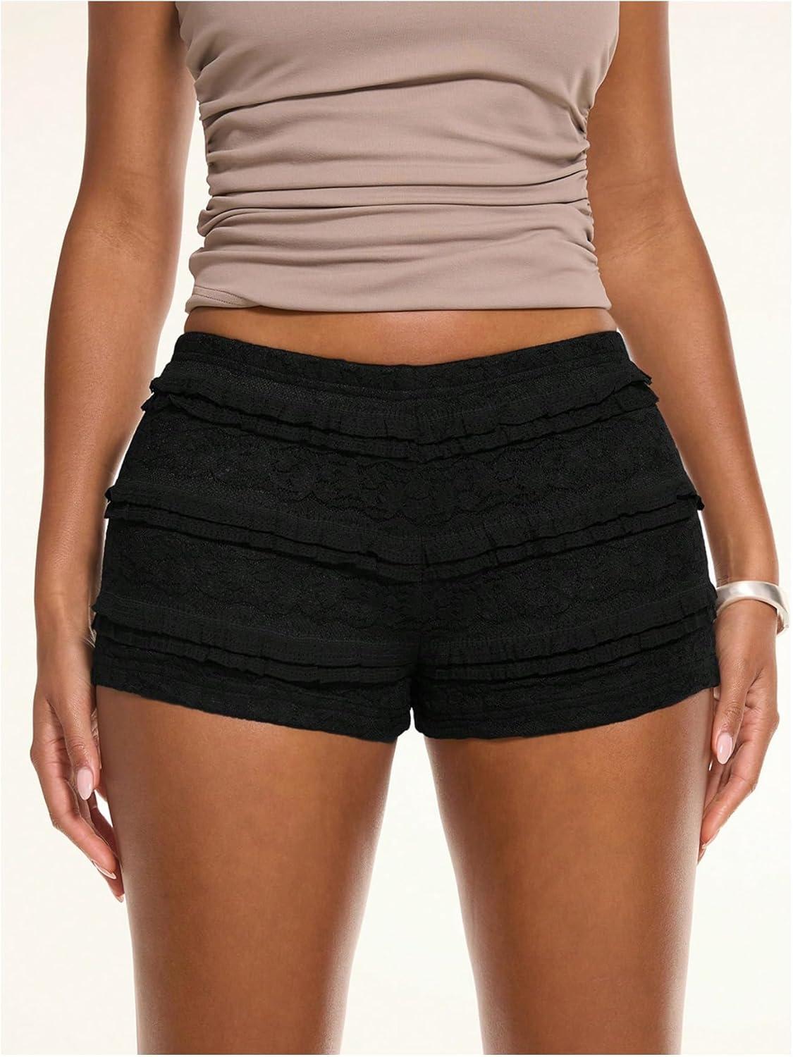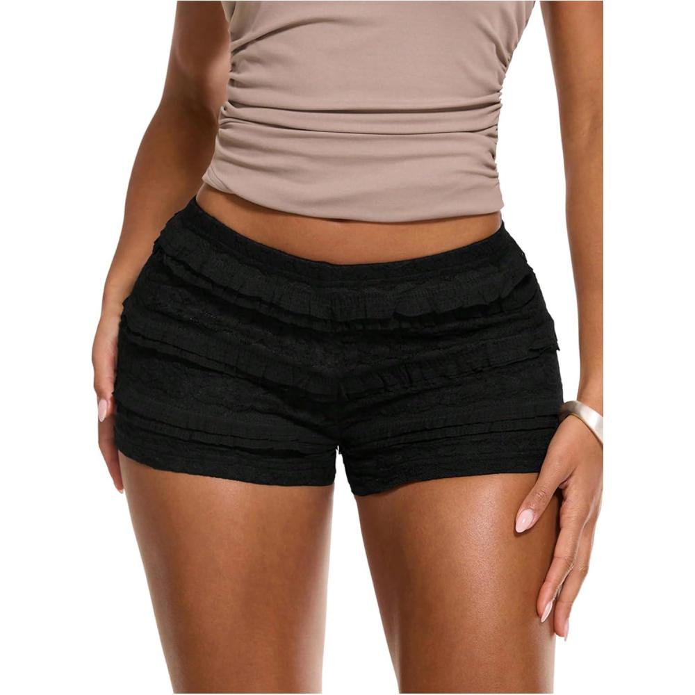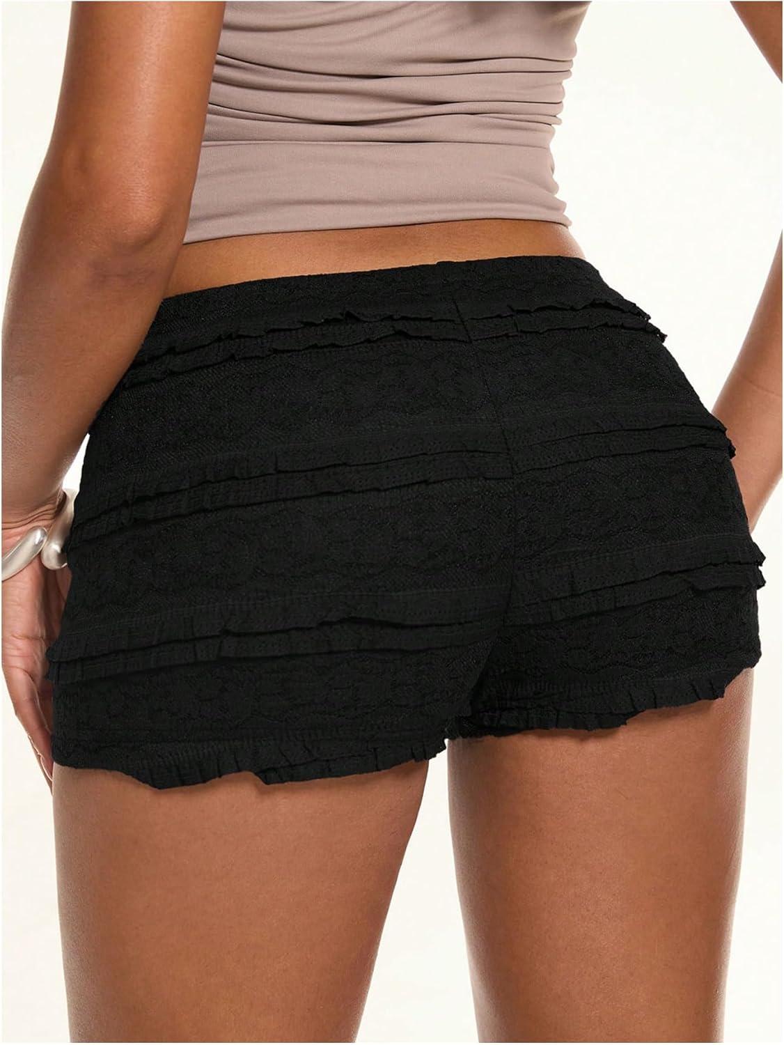 MakeMeChic Women’s Ruffle Shorts Crochet Tiered Layered Summer Beach Micro Shorts(Black Solid)