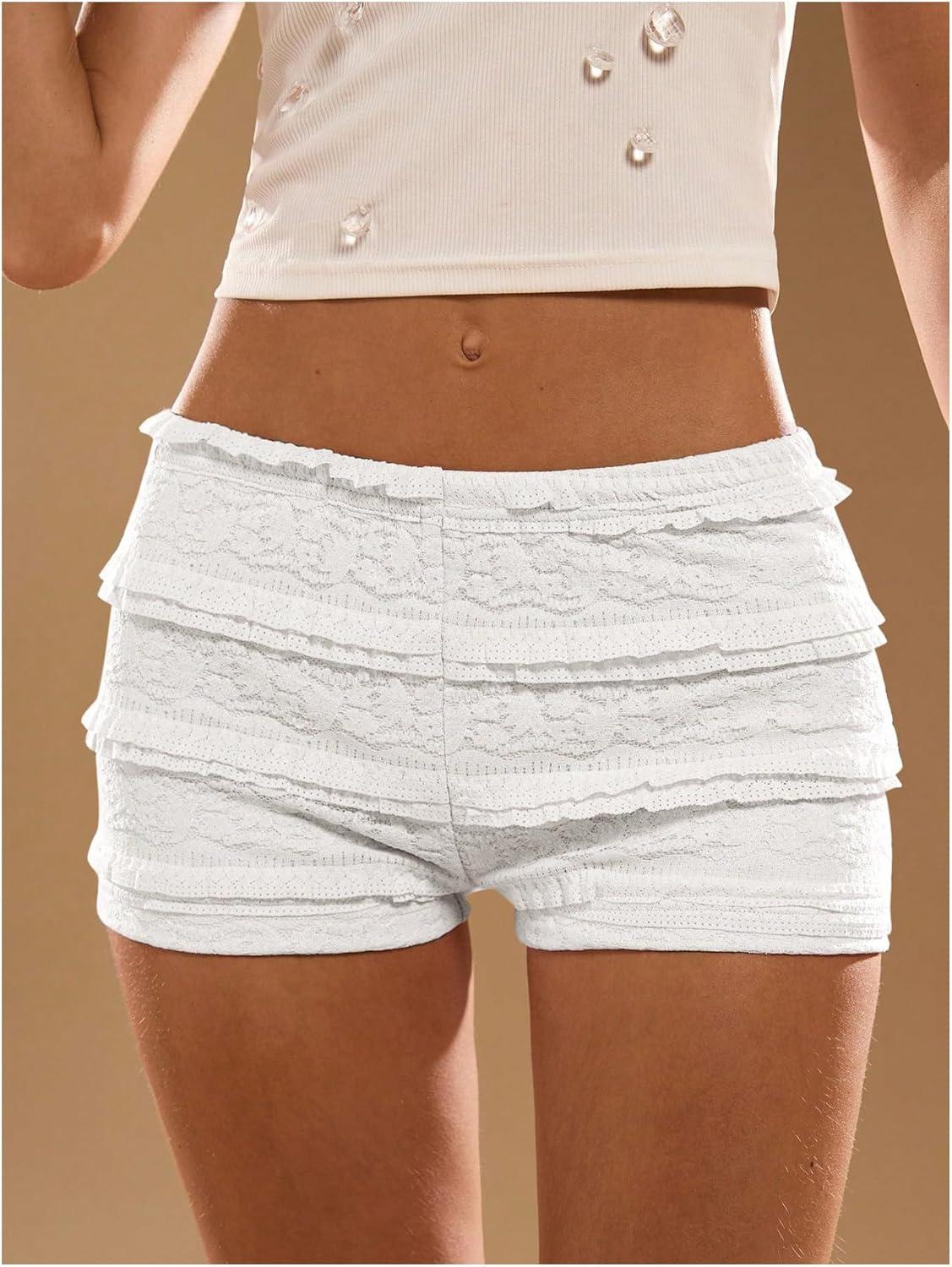 MakeMeChic Women’s Ruffle Shorts Crochet Tiered Layered Summer Beach Micro Shorts(Solid White)