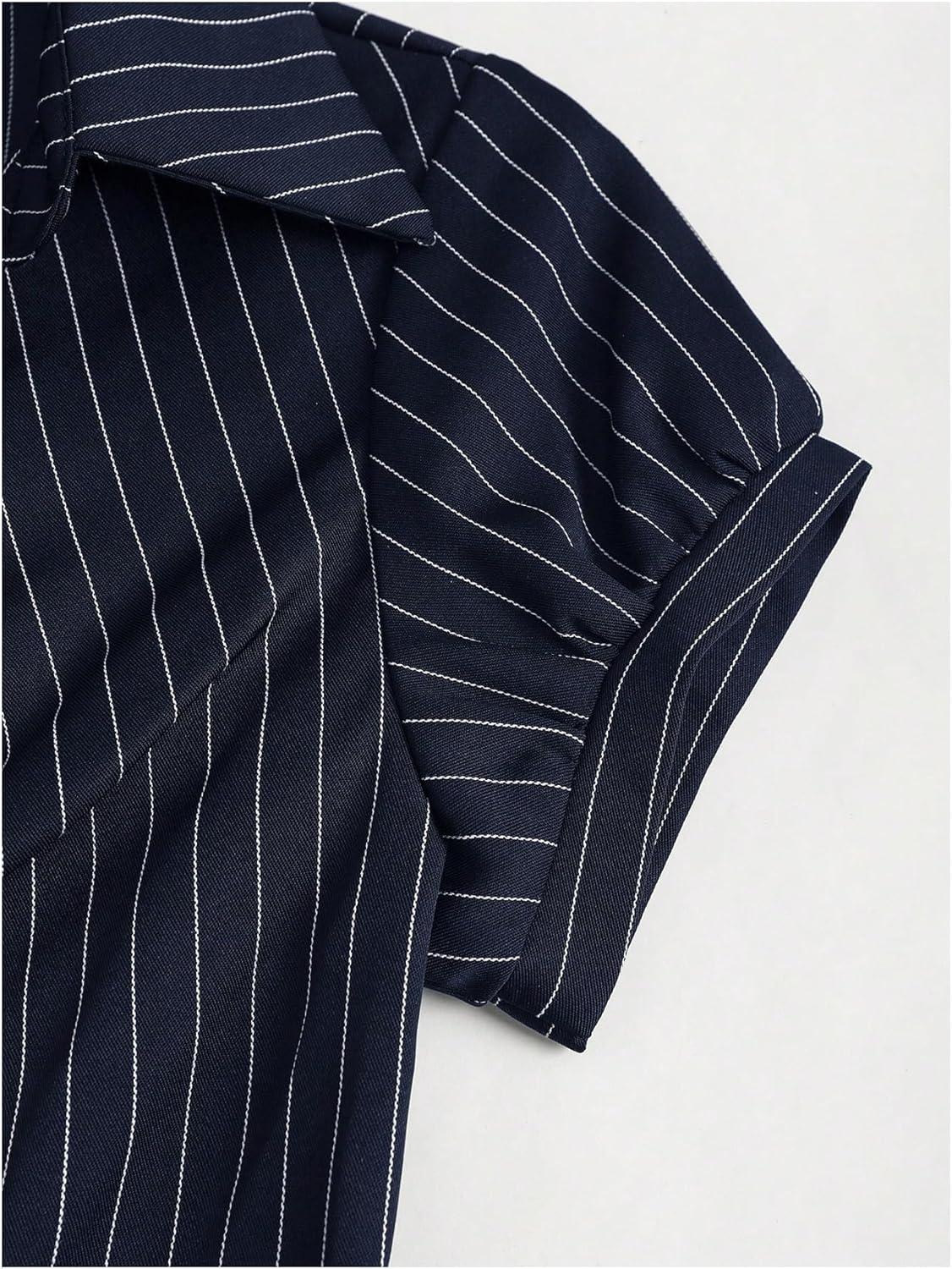 imageMakeMeChic Womens Striped Button Down Shirt Puff Sleeve Collared Fall Work Office Blouse TopBlue