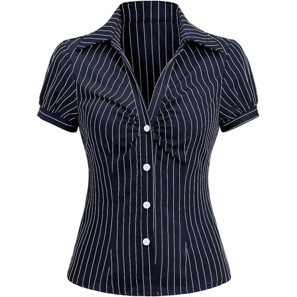 Be the first to review “MakeMeChic Women’s Striped Button Down Shirt Puff Sleeve Collared Fall Work Office Blouse Top(Blue)”
