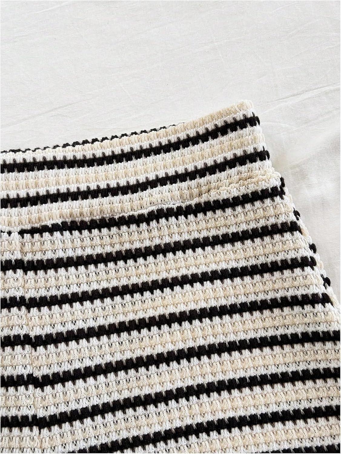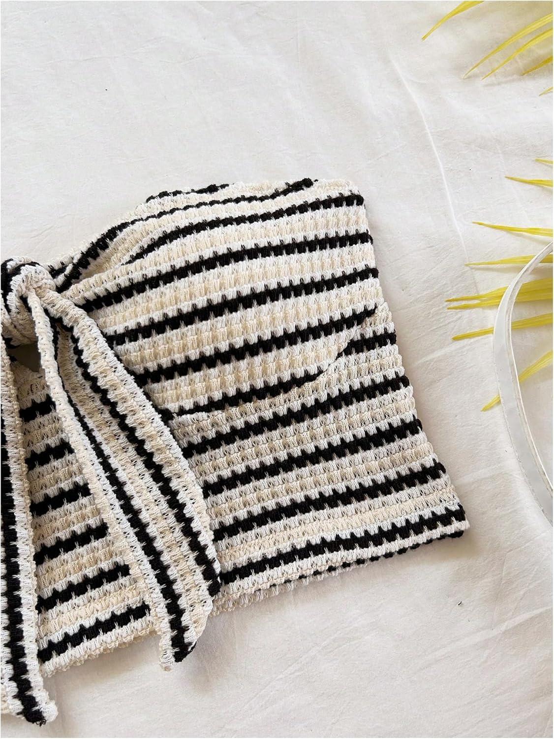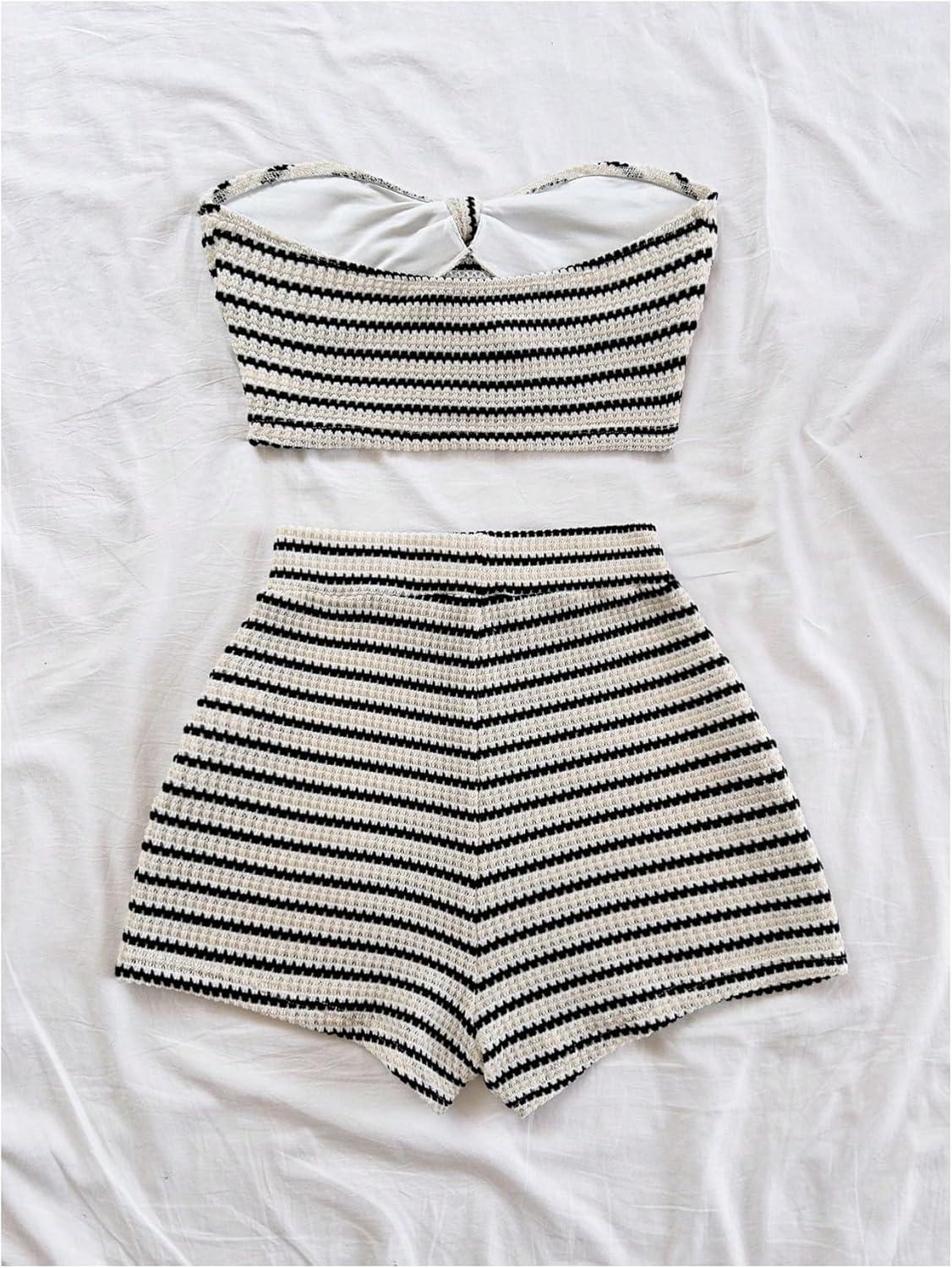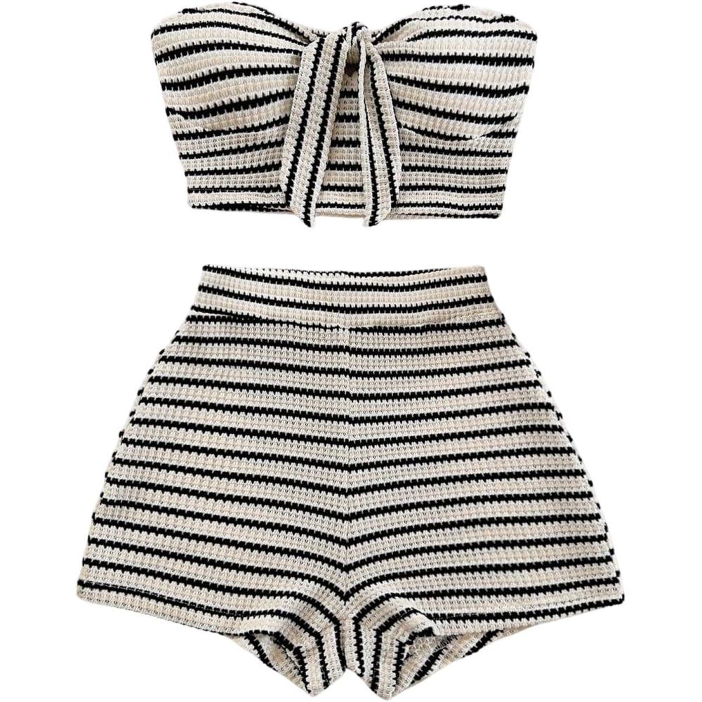 MakeMeChic Women's Summer 2 Piece Sets Striped Strapless Bandeau Tube Crop Tops Shorts Set(Black White)