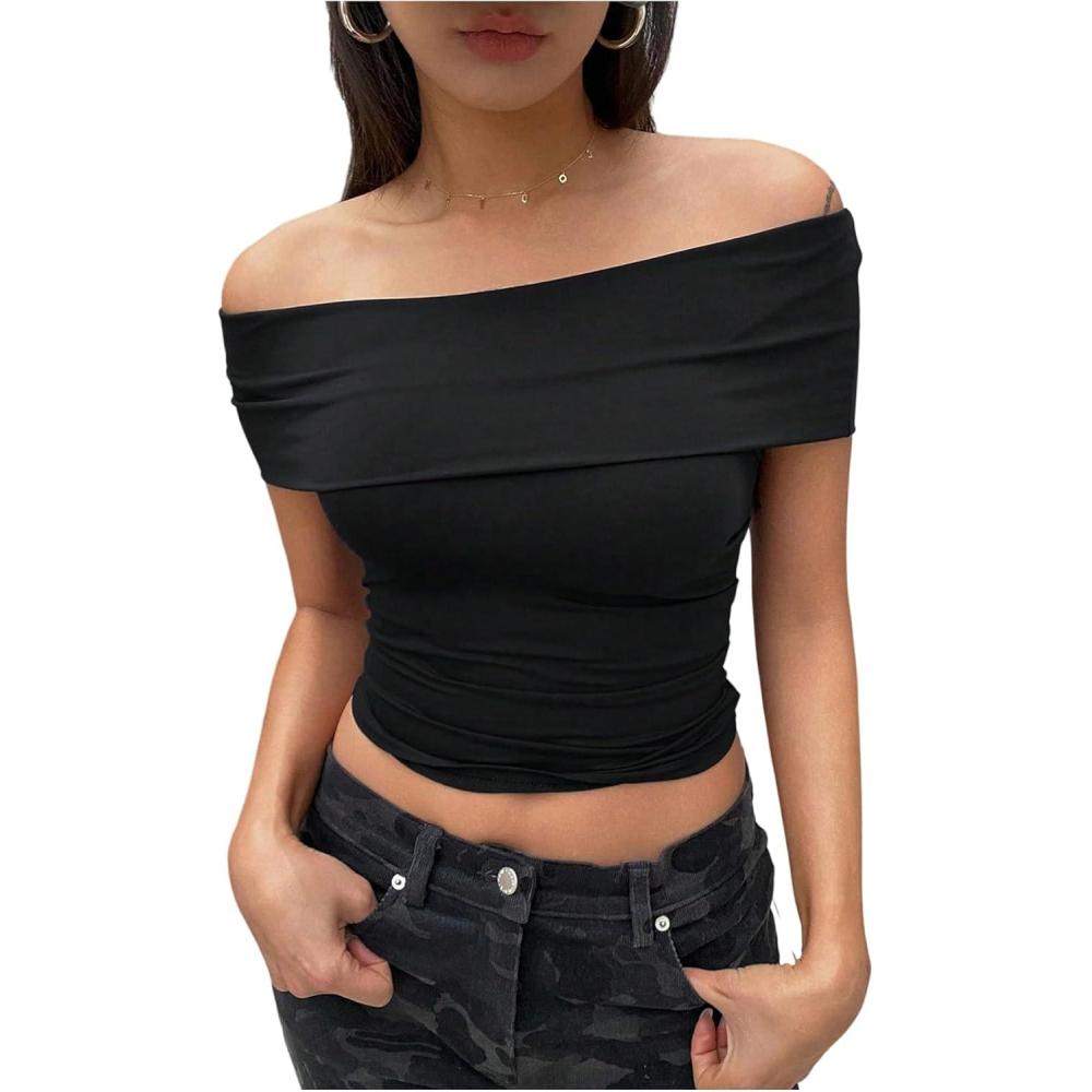 Be the first to review “MakeMeChic Women’s Summer Crop Tops Polka Dots Off The Shoulder Tee Shirt Short Sleeve Ruched Shirts(Black)”