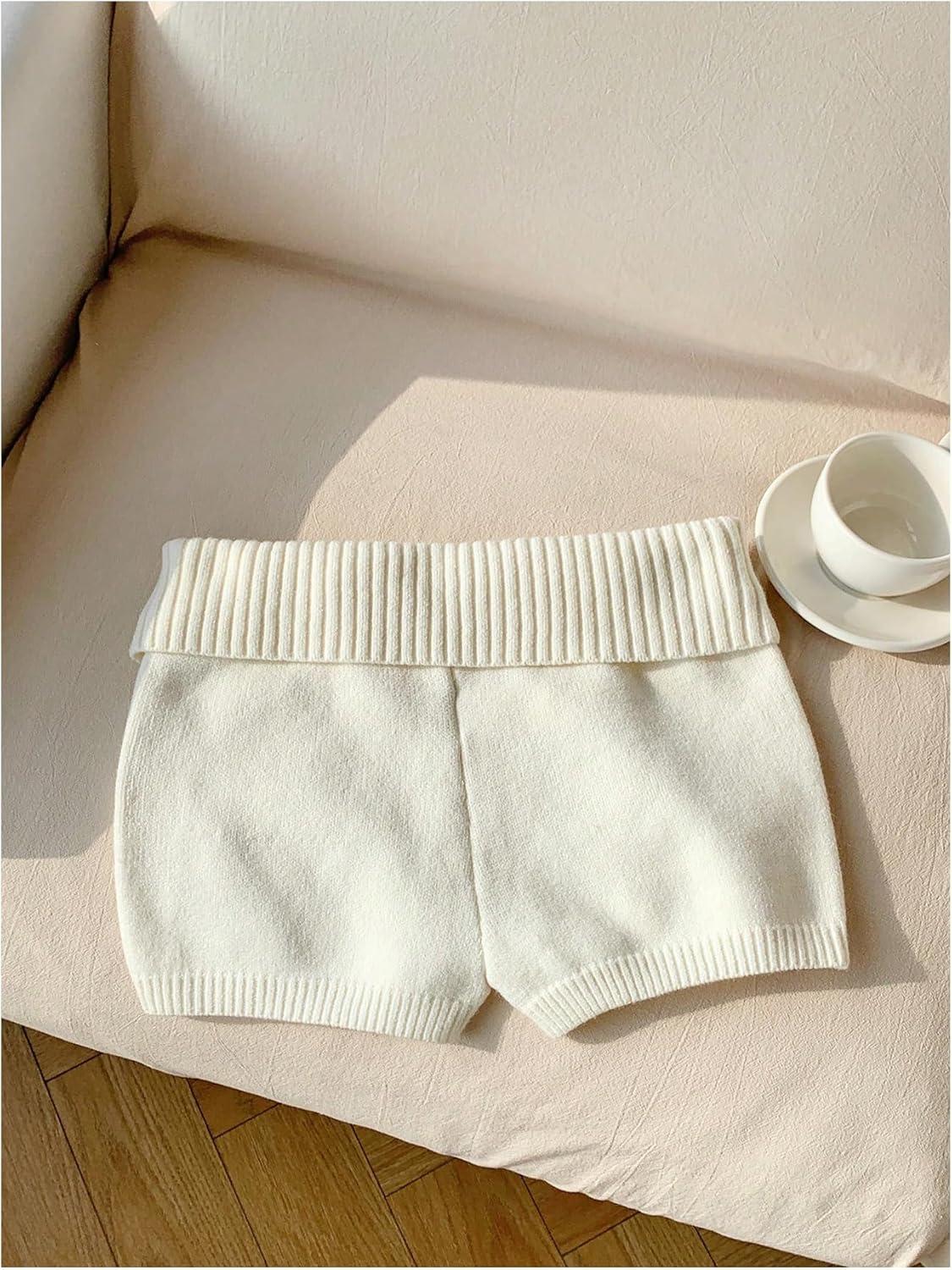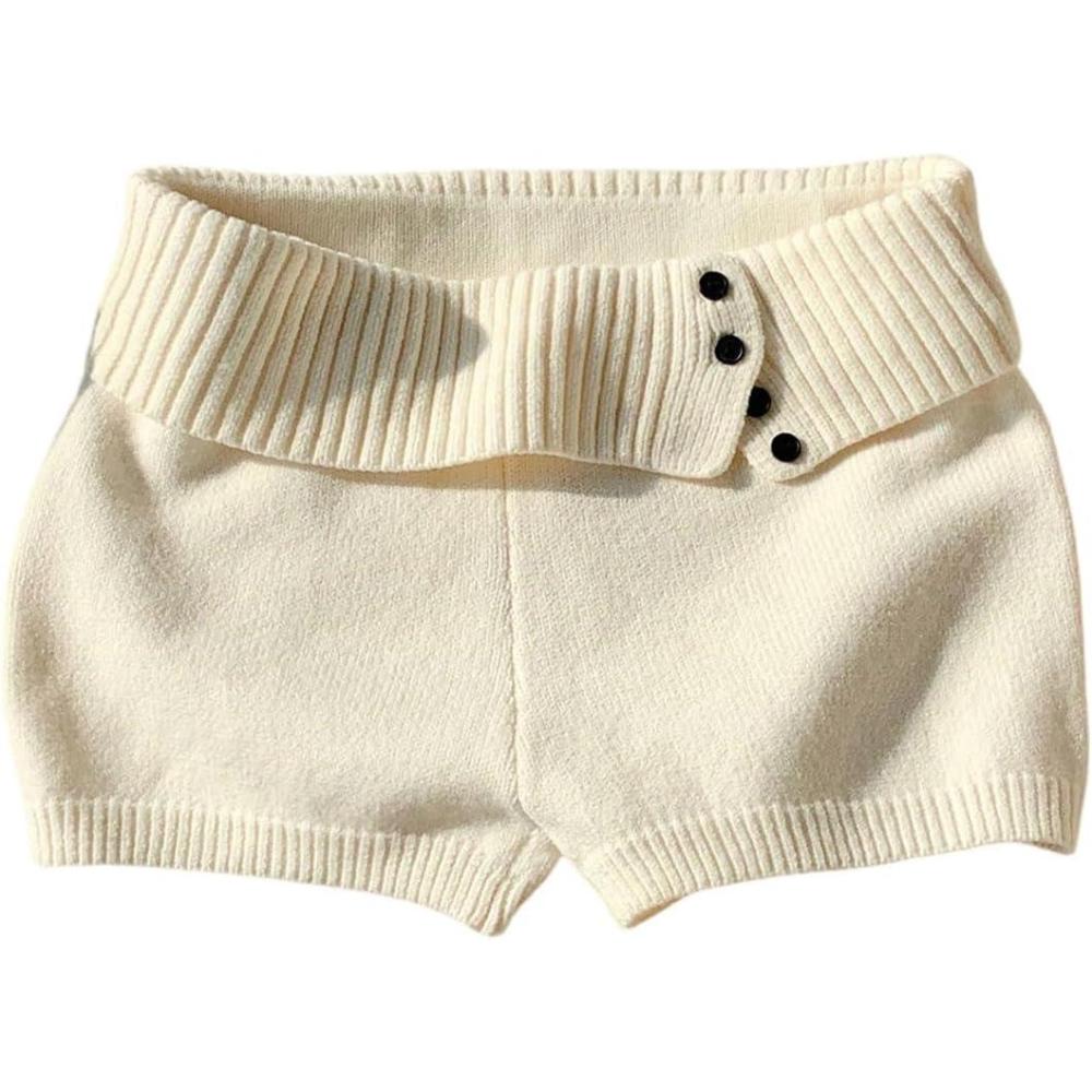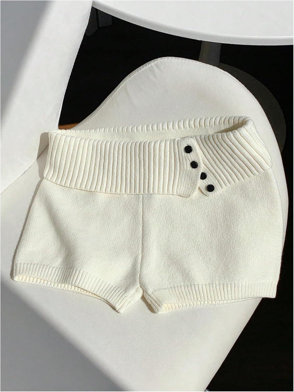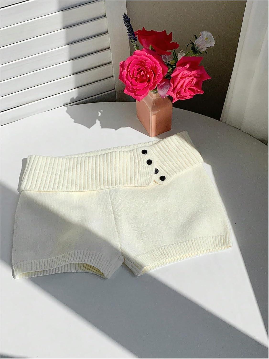 MakeMeChic Women’s Summer Fold Over Mini Shorts Elastic Waist Button Front Knitted Shorts(White)