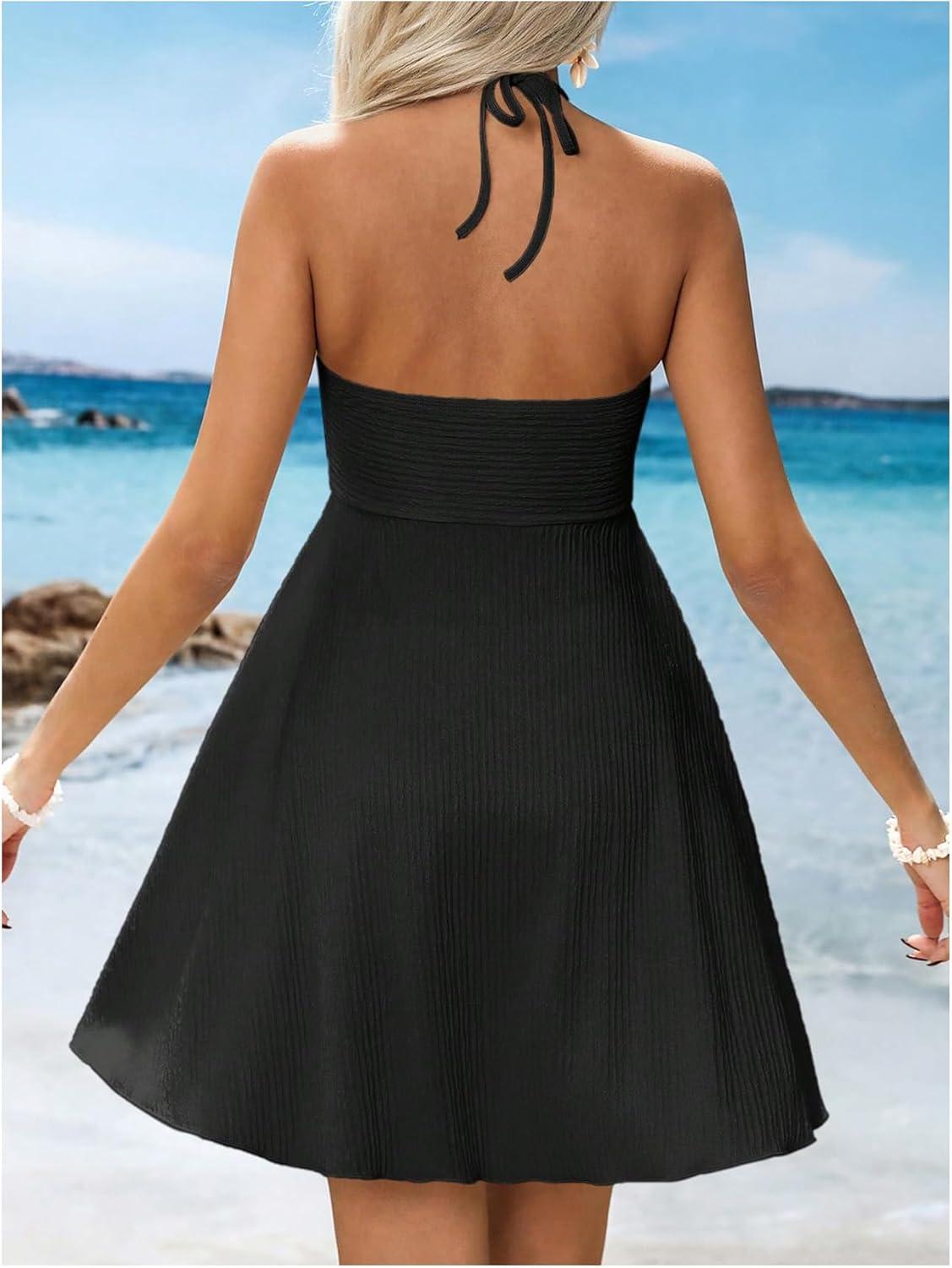 imageMakeMeChic Womens Summer Halter Dress Cut Out Tie Backless Criss Cross Flowy Short Dresses SundressBlack