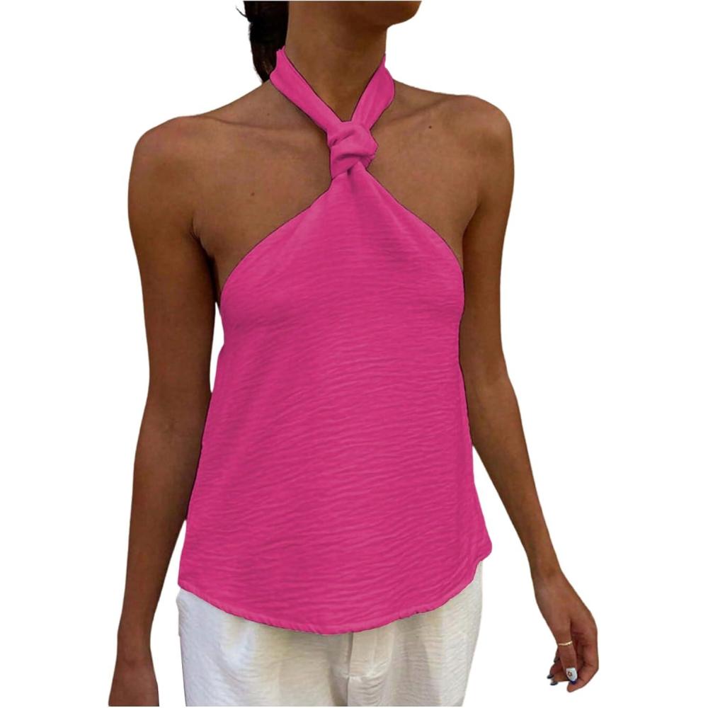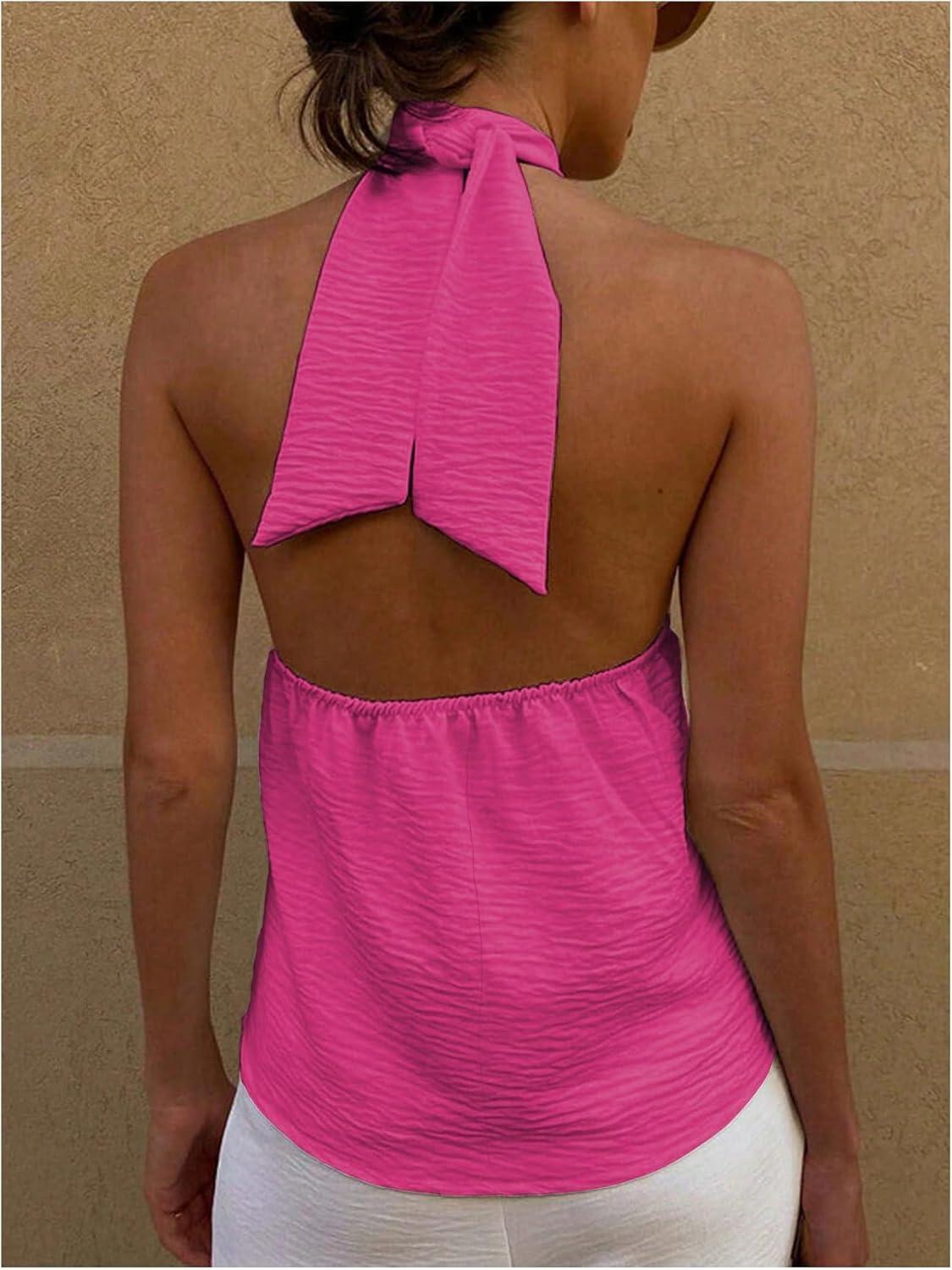 Don’t miss out on our limited-time offer: buy MakeMeChic Women’s Summer Halter Tops Criss Cross Casual Sleeveless Tie Backless Textured Shirt(Hot Pink), get a free {accessory}!