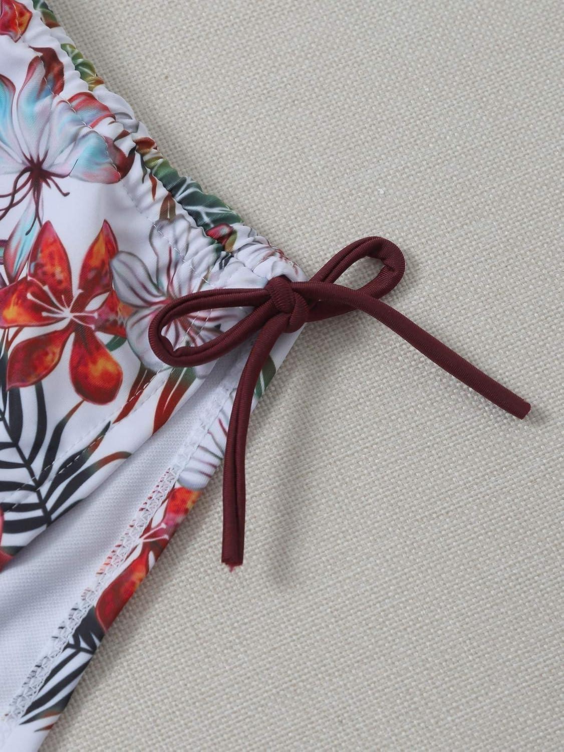 MakeMeChic Women’s Floral Tankini Swimsuit Drawstring Side High Cut Bathing Suit(Multicolor)
