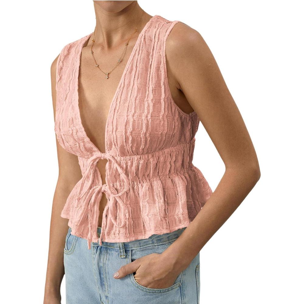 Our holiday sale features the best deals on MakeMeChic Women’s Tie Front Tank Top Sleeveless Ruffle Hem Crop Going Out Tops(Dusty Pink) and accessories. Shop now and save!