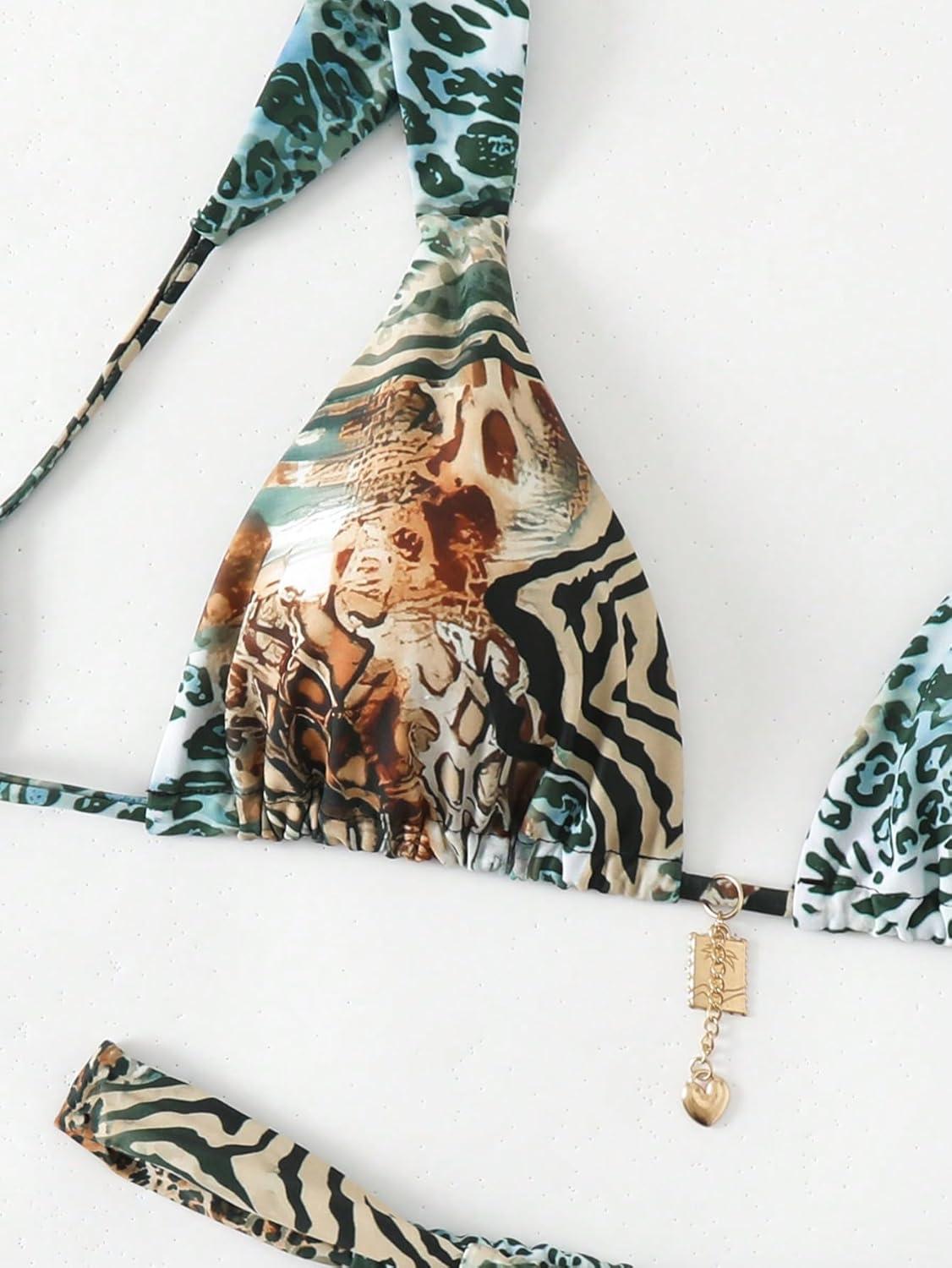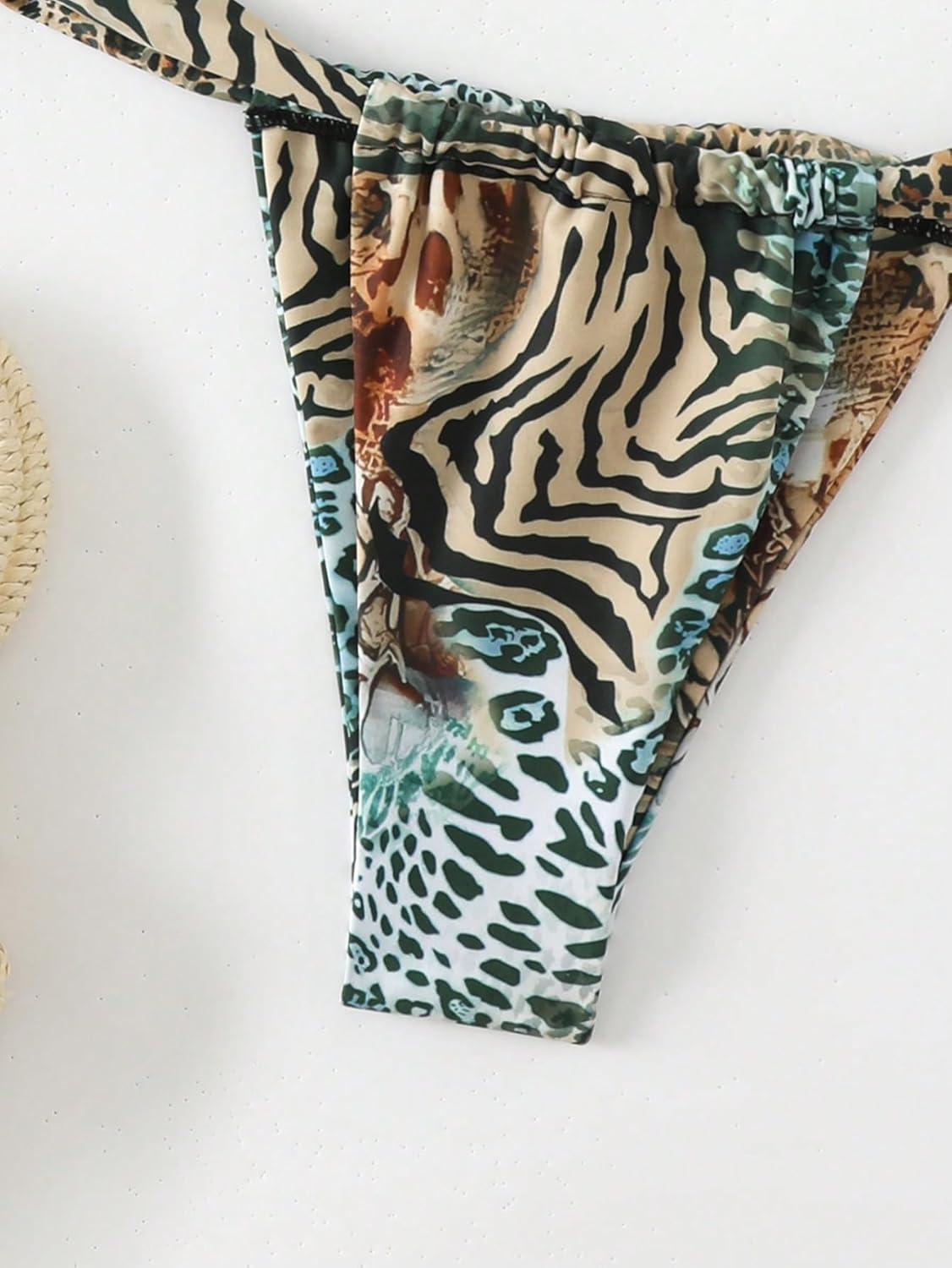 MakeMeChic Women's Triangle Thong Bikini Sets High Cut Swimsuit Bathing Suit Swimwear(Zebra Print)