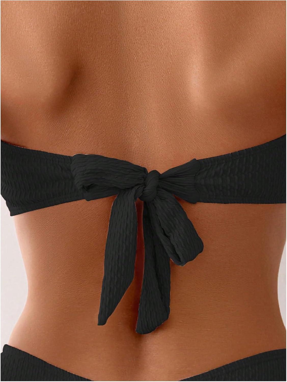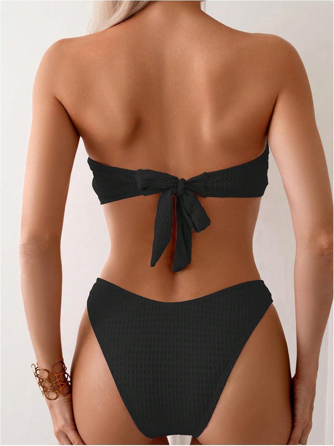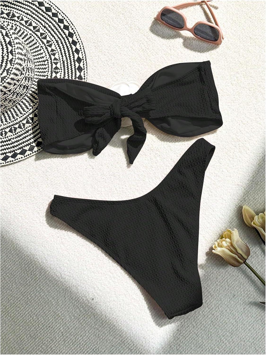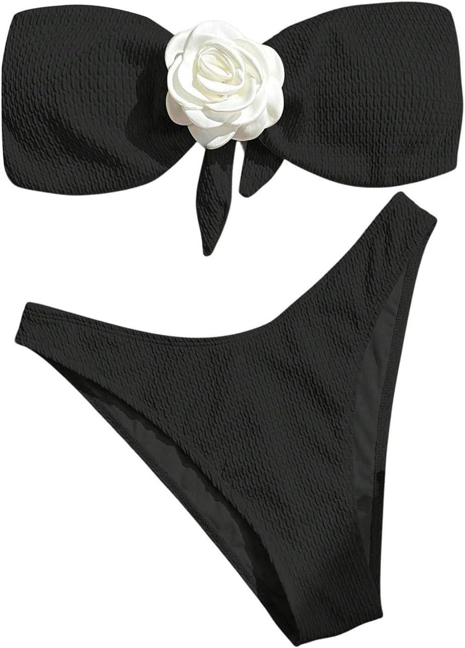 Get the MakeMeChic Women’s Two Piece Bikini Set 3D Flower Textured Strapless Bandeau Tie Back Bathing Suit(Black) you’ve been eyeing at a discounted price during our seasonal sale event.
