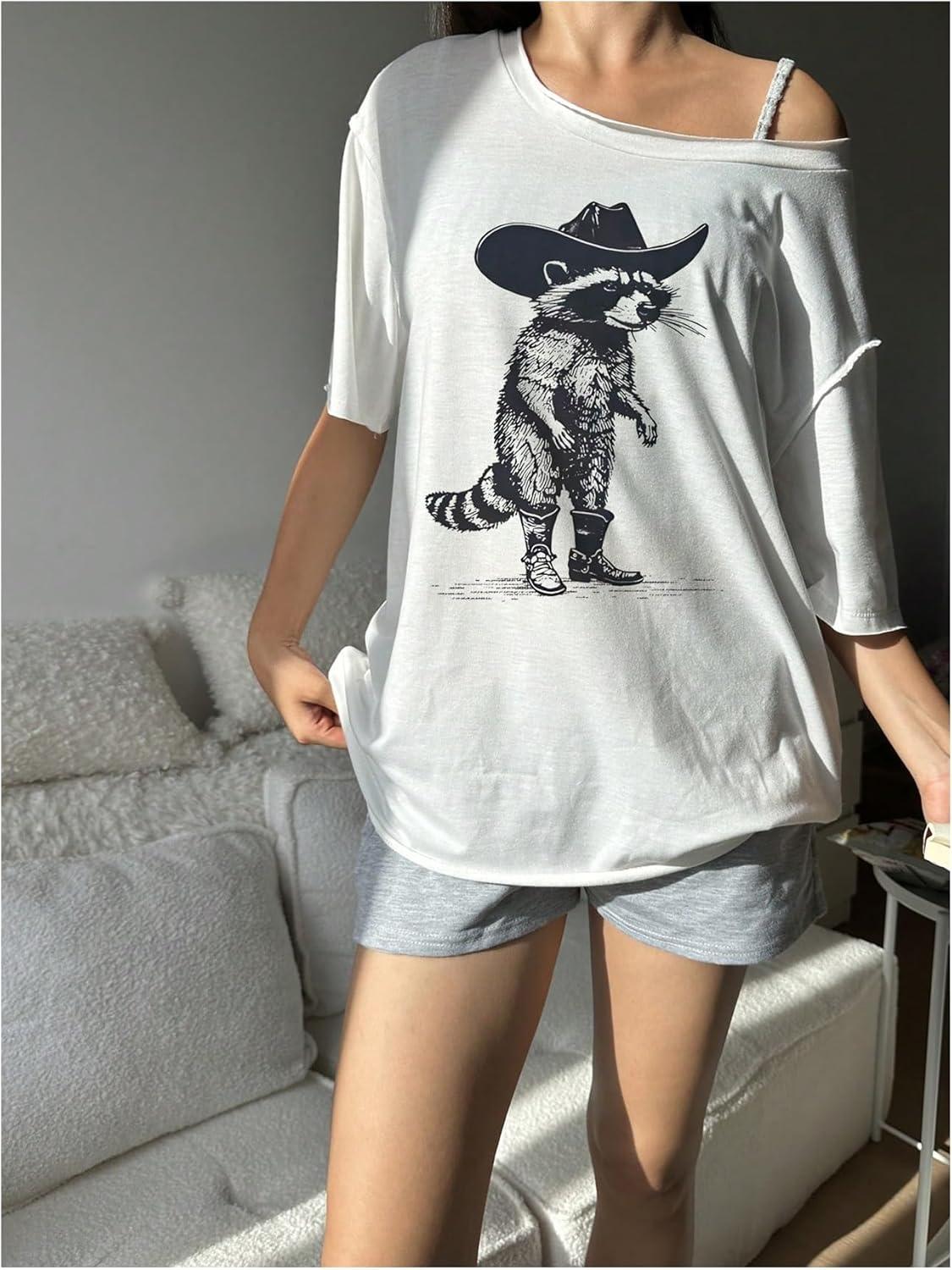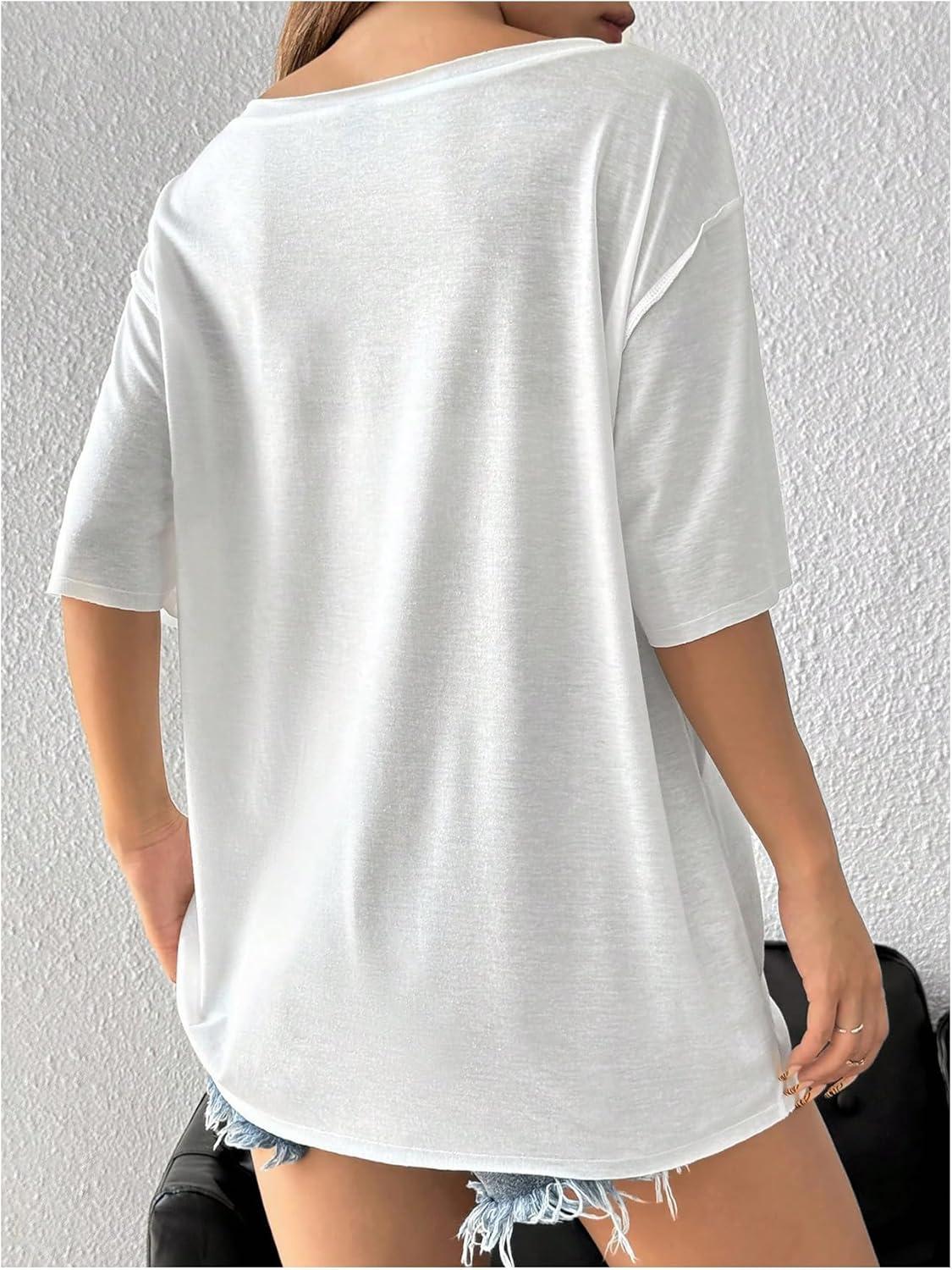 MakeMeChic Women’s Y2k Graphic Tee Off The Shoulder Short Sleeve Oversized T Shirt Top
