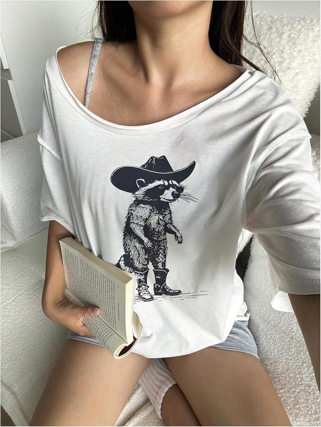 MakeMeChic Women's Y2k Graphic Tee Off The Shoulder Short Sleeve Oversized T Shirt Top