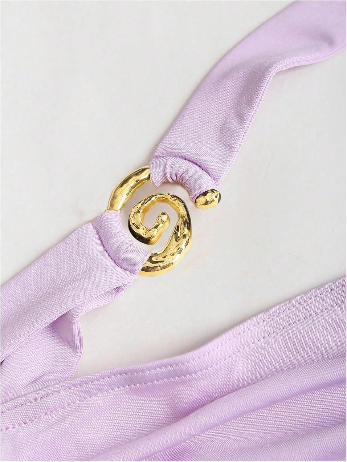 imageMakeMeChic Womens Y2k Halter Mini Dress Backless Ruffle Short Going Out DressLilac Purple